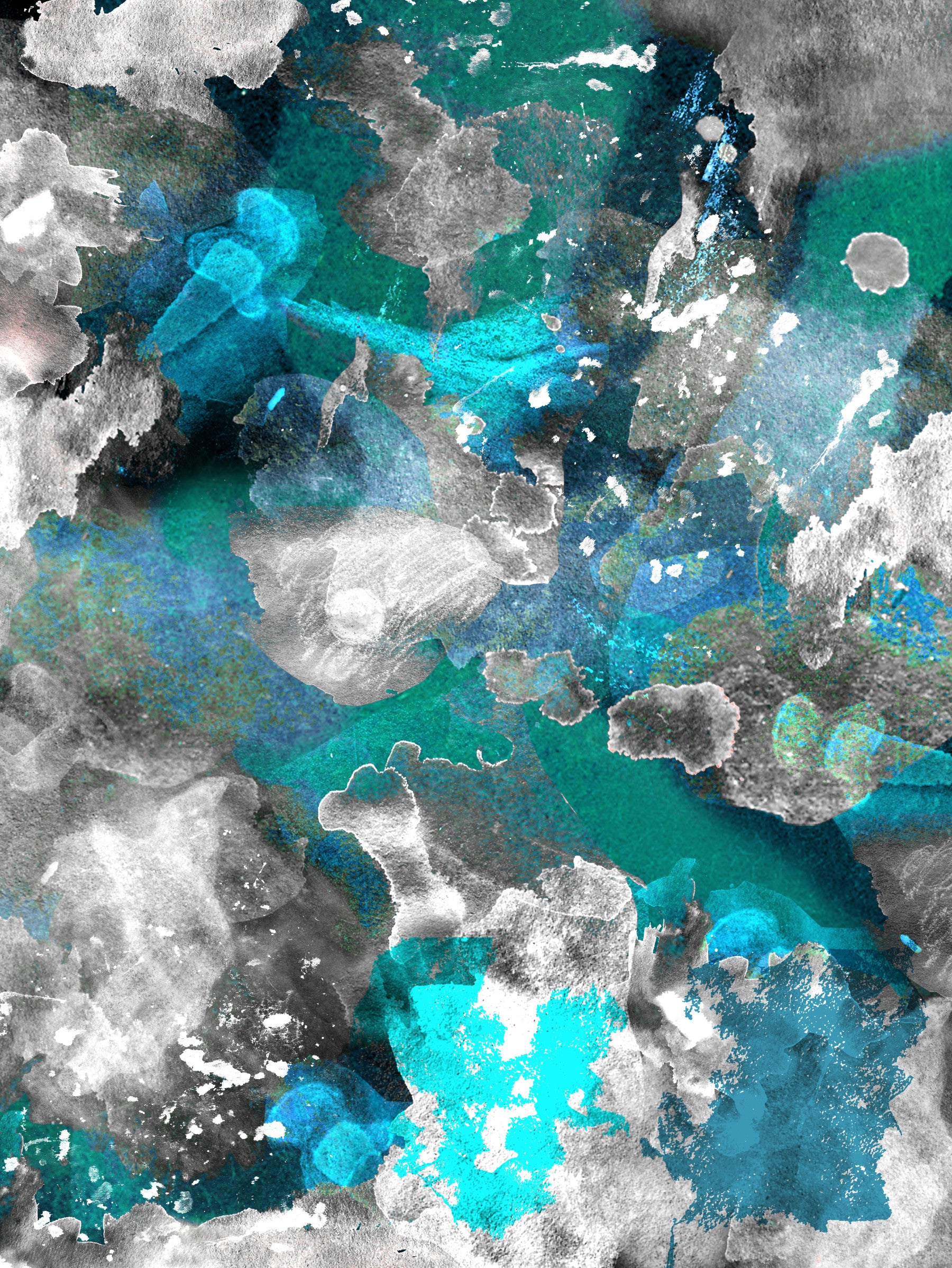 Immerse your space in the captivating allure of 'Aqua Mundi', a wall décor piece evoking the mystique of the underwater realm. Abstract strokes of shimmering turquoise and serene teal intermingle with the textural depth of grey and white, creating a sense of fluid movement and tranquil depth. This artwork captures the essence of the ocean's raw beauty, transforming any room into a haven of calm and reflection. The interplay of light and shadow enhances the visual complexity, making it a striking addition to both modern and traditional interiors. Let 'Aqua Mundi' wash over your walls, bringing the invigorating spirit of the sea into your home.
