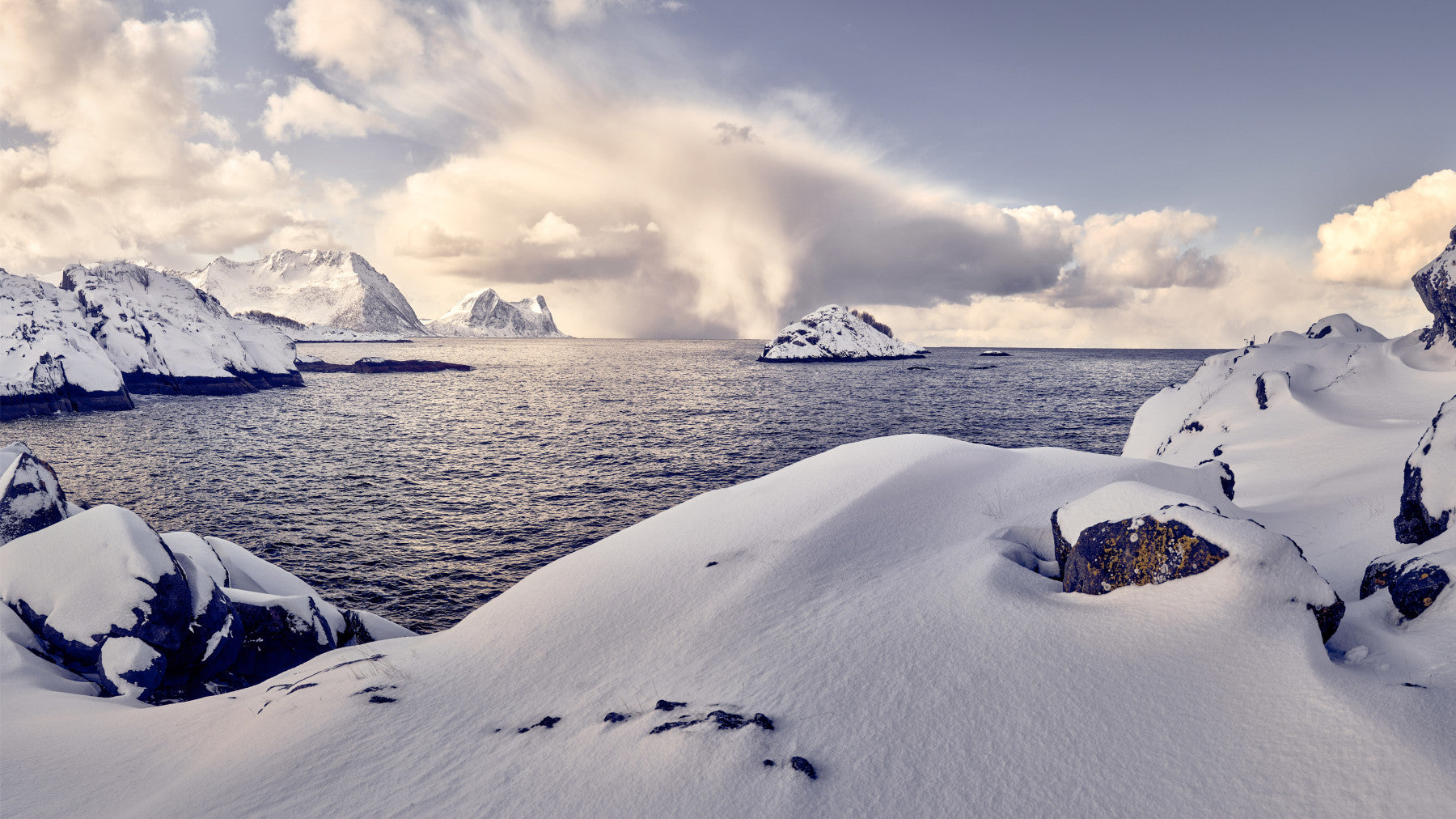 Transform any space with this stunning winter scenery. The design features pristine snow-laden shores against a backdrop of majestic mountains and expansive waters. The subtle contrast of light and shadow adds depth, creating a tranquil yet dramatic effect. Ideal wallpaper for walls in areas craving a sense of calm and sophistication, it complements a study, lounge, or bedroom. This winter dreamscape blends seamlessly with gray or neutral decor.