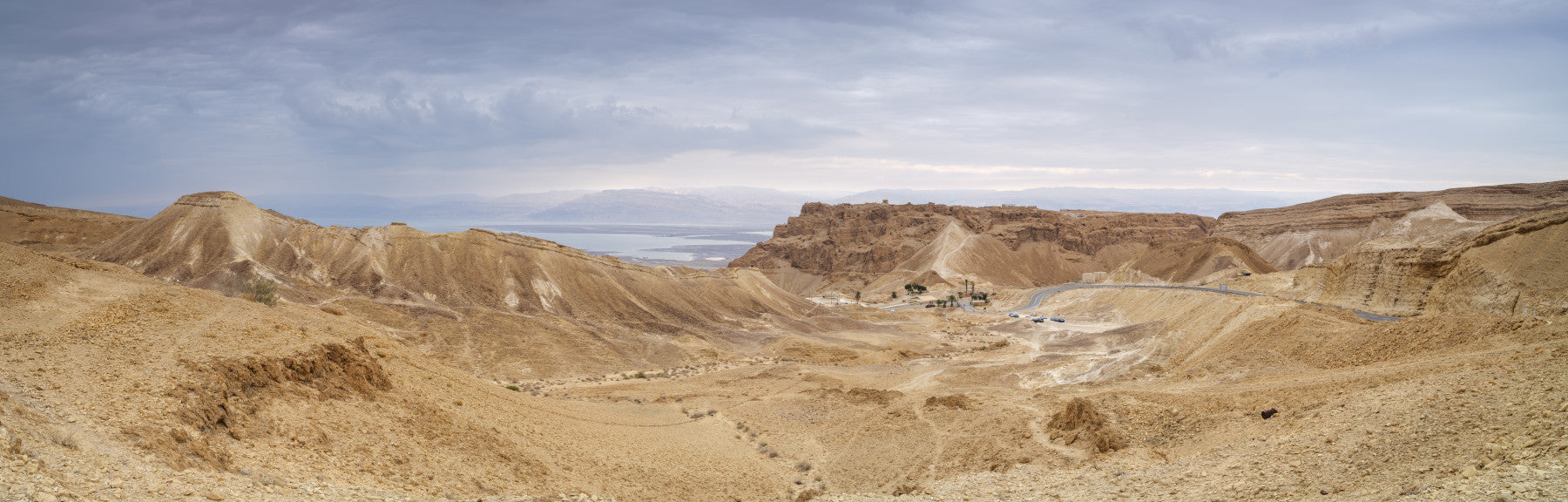 The Arid Majesty: Desert Landscape Design Wall Mural showcases a vast, rugged desert panorama under a dramatic, cloudy sky. Featuring sweeping canyons, weathered mountains, and a distant body of water, this design offers a sense of open space and ancient history. This unique mural wallpaper uses earthy tones—tan, gold, and dusty brown—to ground your room's aesthetic. Simple to apply, this high-quality wallpaper for walls provides a durable and impressive focal point. Use this breathtaking wall mural to grant your space an adventurous, monumental atmosphere.