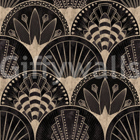 This wallpaper captures the sophisticated charm of the Art Deco era. The design features a seamless pattern of geometric shapes and stylized floral motifs in a rich palette of black and beige. The textured background adds a sense of depth and vintage appeal, while the precise lines and elegant curves create a feeling of refined luxury. Perfect for adding a touch of classic glamour to any space, this wallpaper is a statement piece that elevates the ambiance of a room. Its timeless design ensures it will remain stylish for years to come, creating a visually stunning focal point in your home or office.
