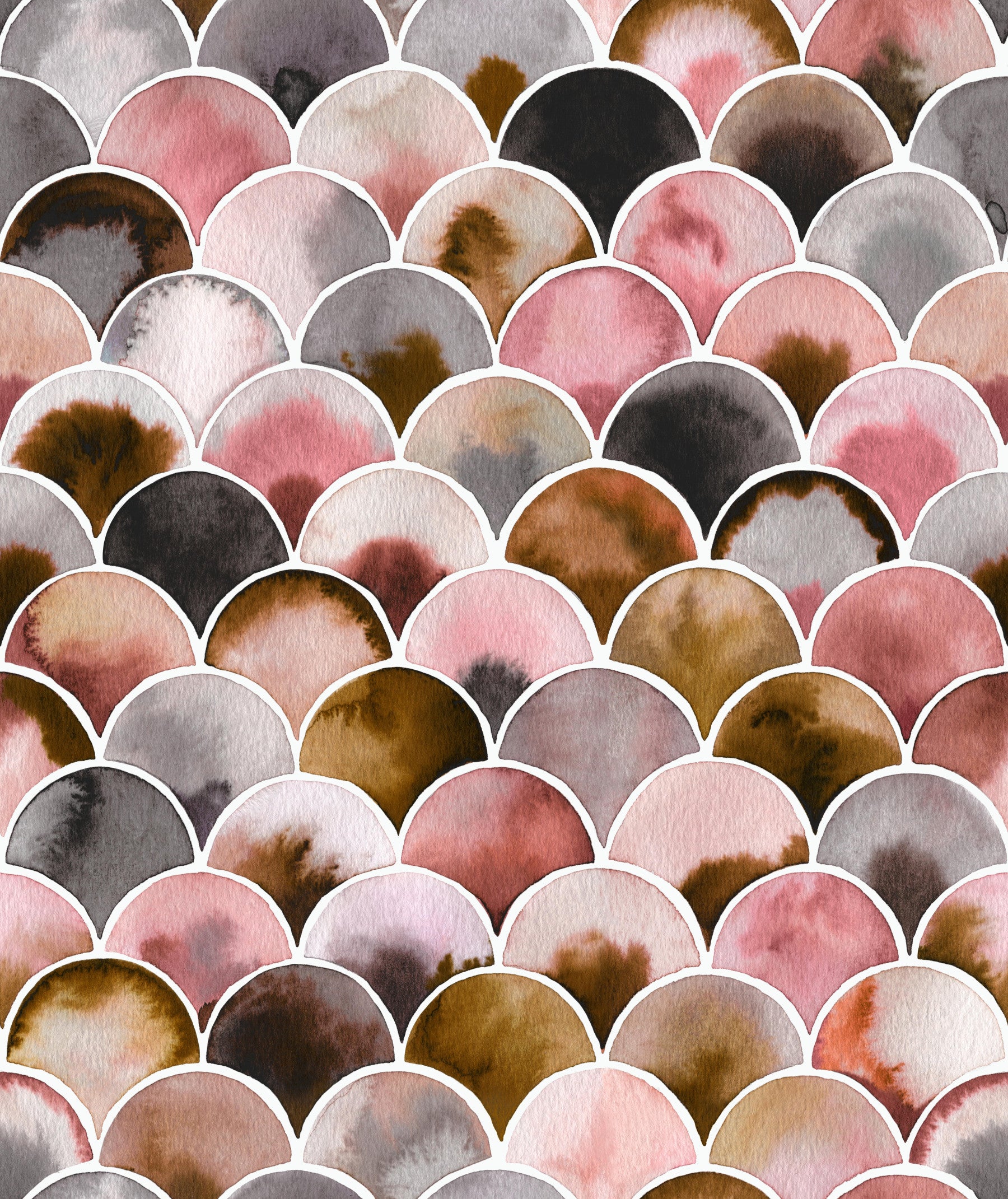 Indulge in the serene elegance of this Art Deco Japandi Pink Gold Vintage wallpaper. A mesmerizing pattern of watercolor-painted scales in muted pinks, soft golds, and sophisticated greys creates a calming yet luxurious atmosphere. The delicate linework outlining each scale adds a touch of Art Deco precision, while the soft, blended watercolor effect evokes a sense of Japanese minimalism. This vintage-inspired design seamlessly blends Eastern serenity with Western sophistication, resulting in a wallpaper that is both timeless and trendy, perfect for adding a touch of understated glamour to any space.