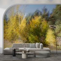 Autumn's Whisper: Blurred Nature Photography of Golden Trees Wall Mural