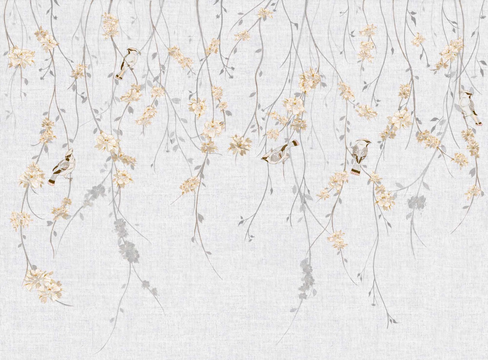 Avian elegance wall mural showcasing birds and leafy branches.