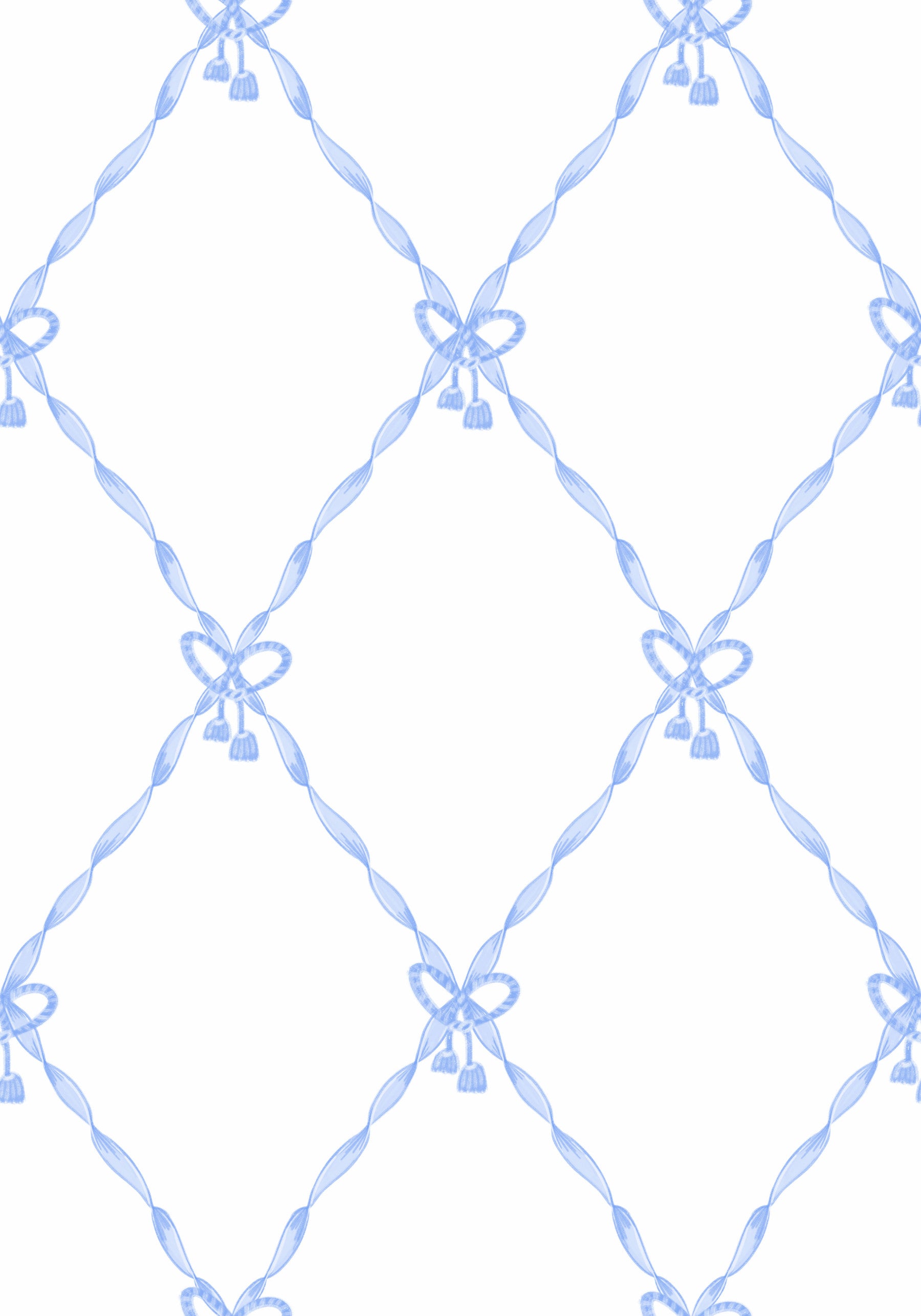 Capture understated beauty with this delicate bow and tassel repeat pattern. The flowing ribbon effect creates a textured effect that adds visual interest. The soft blue color brings a calm, soothing vibe, making this wallpaper for walls ideal for nurseries, bedrooms, or bathrooms. Its versatile design complements many styles, from classic to contemporary, adding a touch of refined elegance to any space. Let this delicate wallpaper transform your home.