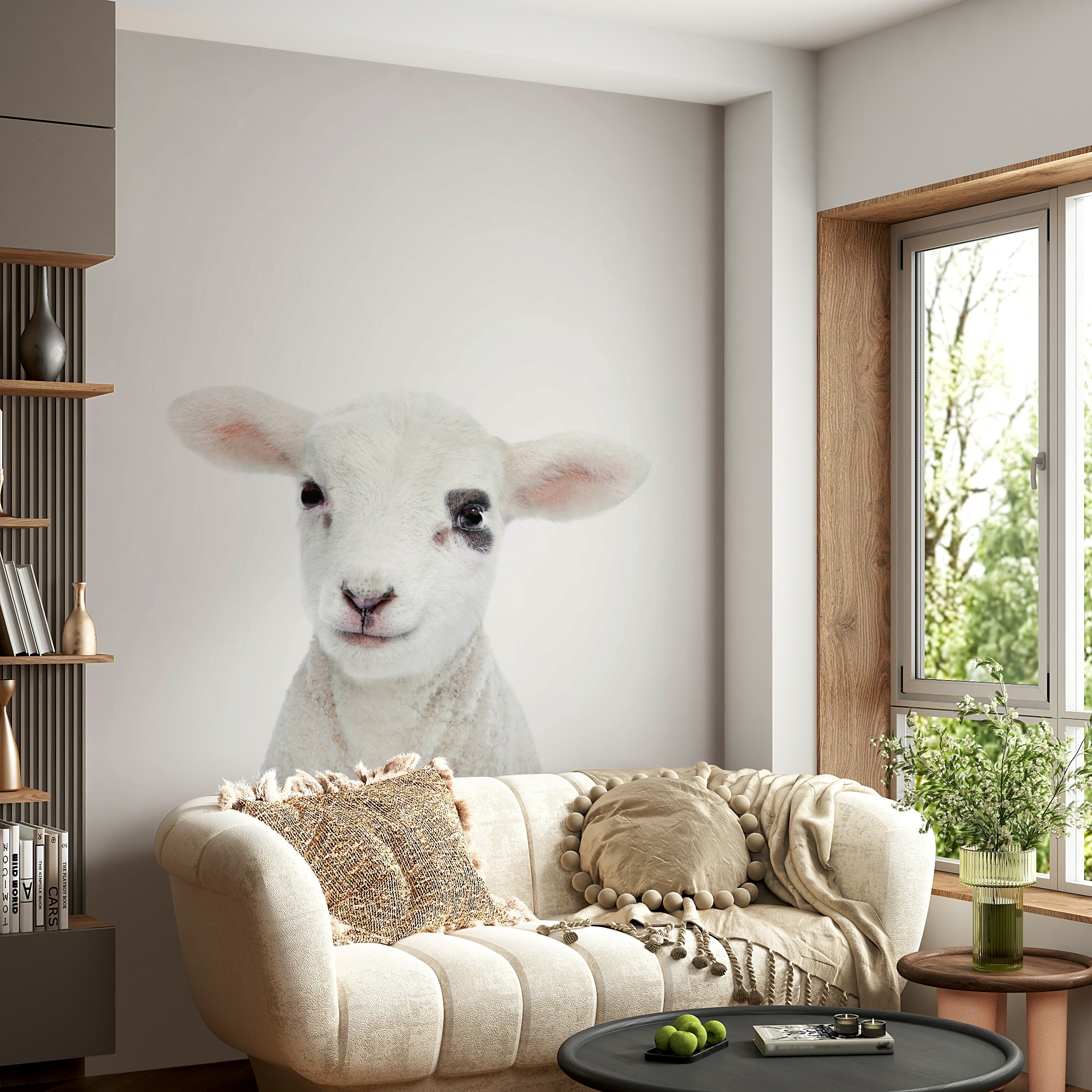 This adorable wallpaper features a close-up of a baby lamb, its fluffy white coat contrasting beautifully against a stark white background. The lamb's innocent gaze and delicate features create a heartwarming and serene mood. Notice the subtle dark markings around its eyes, adding a unique touch to its charming expression. This image is perfect for bringing a sense of springtime purity and gentleness to your device's screen, offering a peaceful and uplifting visual experience. The soft texture of the lamb's wool is almost palpable, inviting a feeling of comfort and tranquility. A perfect choice for anyone who appreciates the simple beauty of nature and adorable animals.