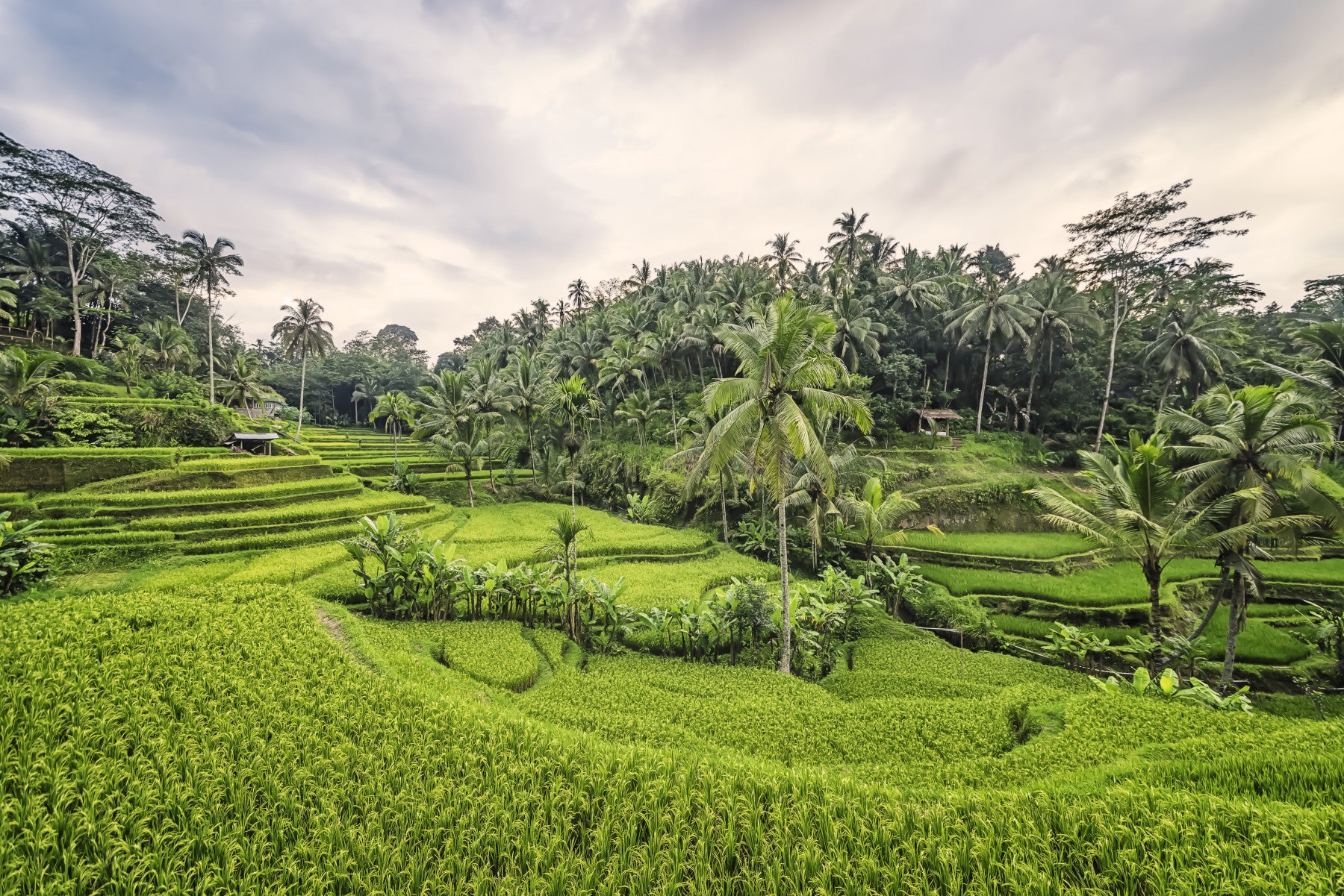Bali Rice Terraces coconut palm tree wallpaper for walls.