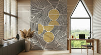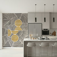 Infuse your interior space with the striking harmony of the "Bauhaus - Tribal" collection. This expressive wall decor piece melds the geometric precision of the Bauhaus movement with the raw, uninhibited energy of tribal art. Bold black lines dance across a neutral canvas, forming captivating patterns that evoke a sense of rhythm and ancestral connection. Intersecting shapes create visual complexity, guiding the eye through a stimulating landscape of form and texture. Accents of textured gold add a touch of luxurious warmth and primitive elegance, grounding the design in a sophisticated yet earthy aesthetic. Transform your wall into a focal point that celebrates both modernism and the timeless allure of indigenous artistry. Let this statement design create a feeling of dynamic, artistic exploration.
