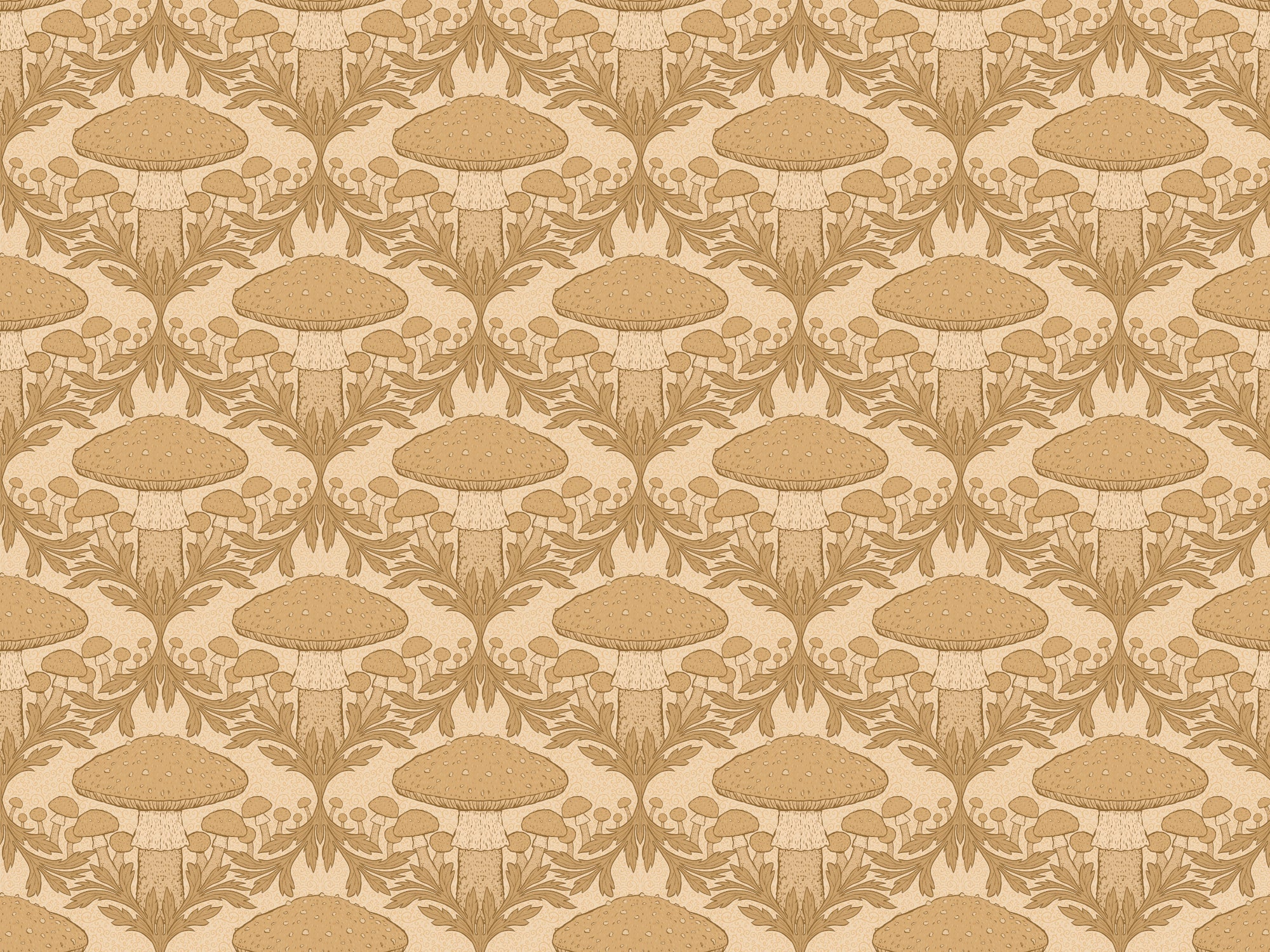 Charming heritage mushroom wallpaper in beige for cozy spaces.
