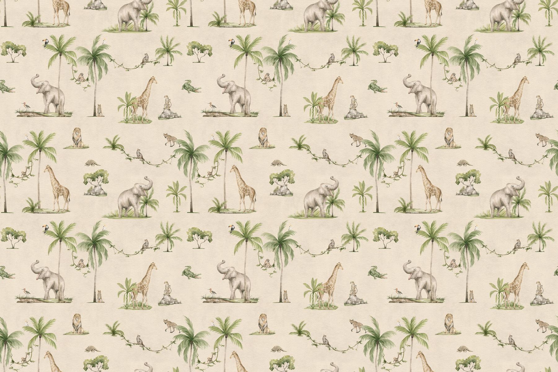 Transform your space into a serene jungle retreat with this Beige Safari Wildlife Wallpaper, featuring majestic elephants, giraffes, lions, and exotic birds among lush greenery. The soft beige background adds warmth and versatility, making it an ideal choice for nurseries, kids' rooms, or nature-inspired interiors. With intricate watercolor details, this safari-themed wallpaper blends seamlessly with modern and classic décor. Printed on high-quality, easy-to-install material, it ensures durability and a flawless finish. Perfect for creating a gender-neutral safari adventure, this wildlife wallpaper brings the beauty of the wild into any space.