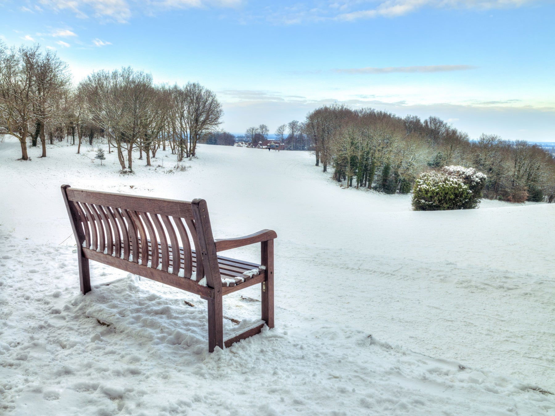 Bench in a Snowy Landscape bright wallpaper for walls.