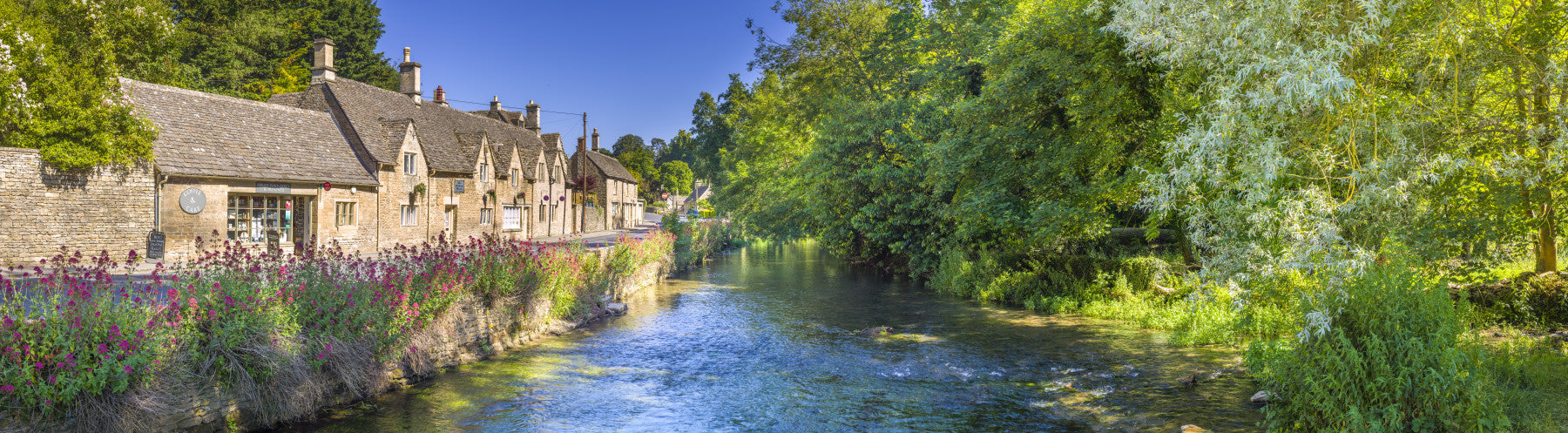 River in Bibury village, Gloucestershire, UK. Invite the beauty of a British village into your space! This wallpaper for walls captures a refreshing view of a clear stream winding through Bibury, England. The scene features charming stone cottages, colorful flowers, and abundant green foliage, creating an idyllic panorama. Its serene design and vibrant colors bring a touch of nature indoors, perfect for a living room or bedroom, enhancing its decor with a sense of tranquility and elegance.
