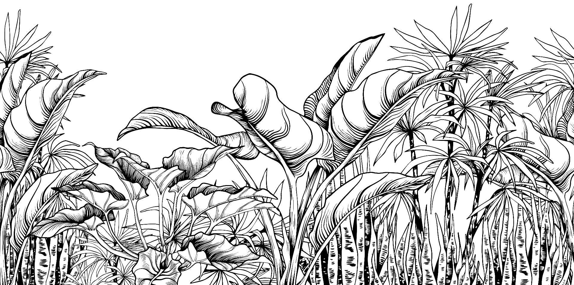 Black & White Big Tropical Leaves Wallpaper Mural - Giffywalls