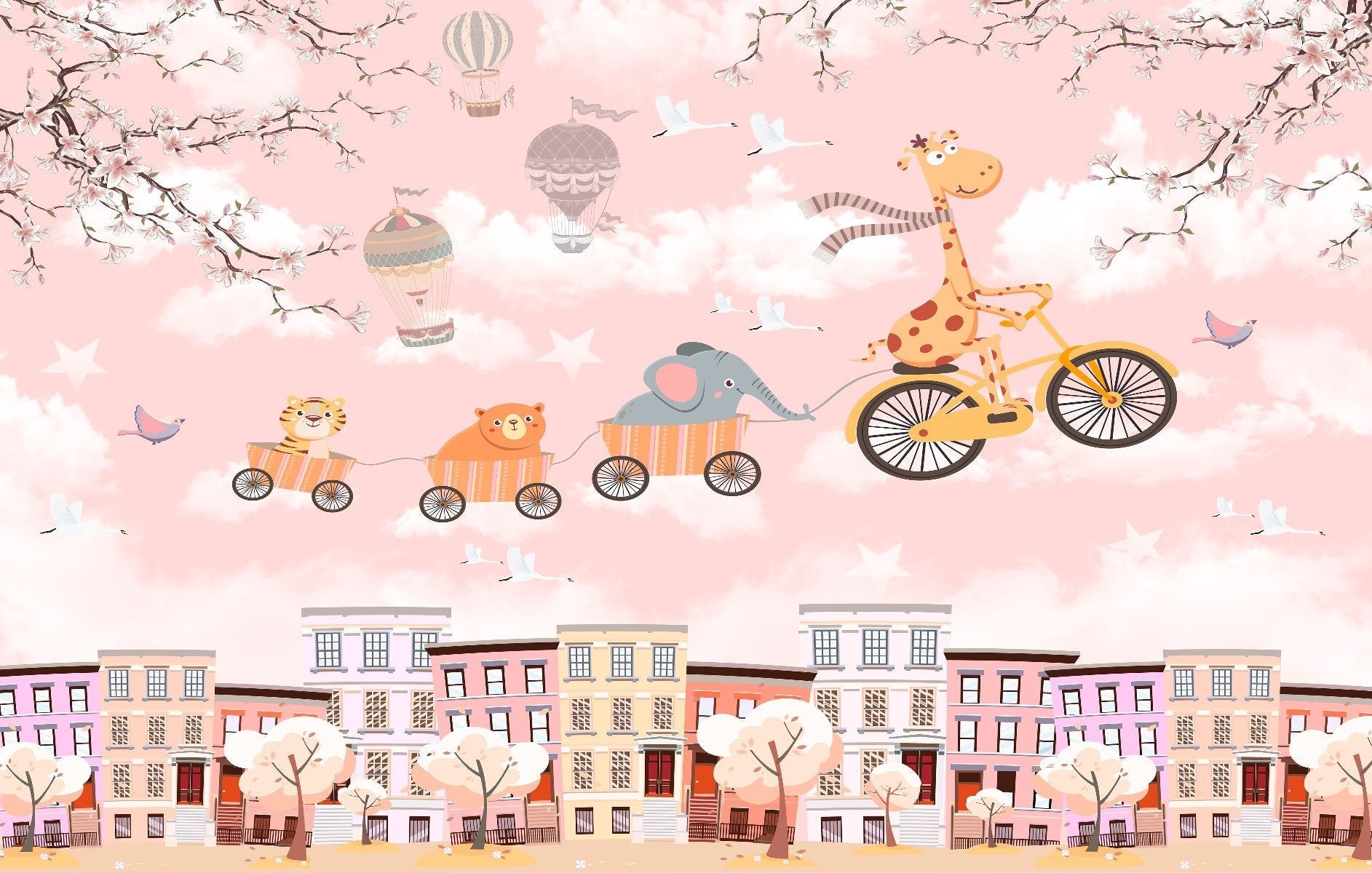Our Animals on Cycle Self-Adhesive Wallpaper for Kids Room will make their room look better. This fun design has cute cartoon animals riding cycle on sky, which would look great in any child's room. It's great for people who like to change the look of their kids' rooms often because the wallpaper is changeable. This wallpaper for kids looks good and is easy to put up and take down, which makes it a good choice for parents. The cute pink kids' wallpaper adds a bit of fun, and the animal safari and outdoor animal wallpaper themes keep kids' minds busy. Our kids' peel-and-stick wallpaper goes well with a lot of different types of rooms, including nurseries. Make a lively and enjoyable space with this stylish and adaptable kids' wallpaper that is made to match any wallpaper for interior design needs.