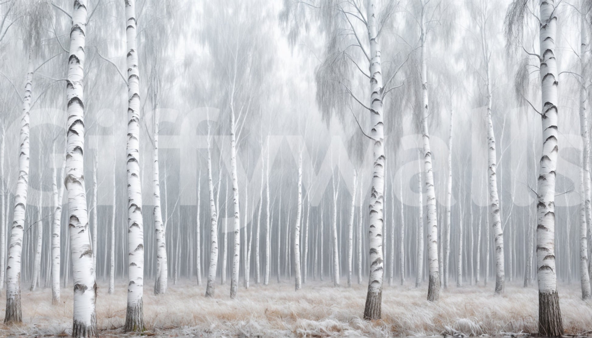 Transform your walls with the serene beauty of 'Birch Whispers.' This elegant wallpaper for walls features a dense birch forest shrouded in mist, creating a tranquil and calming ambiance. The monochrome palette of whites, grays, and subtle browns adds a touch of sophistication to any room. This design works well in bedrooms, living rooms, or hallways, bringing the quiet beauty of nature indoors. It enhances spaces with a sense of depth and tranquility, making it perfect for creating a relaxing atmosphere.