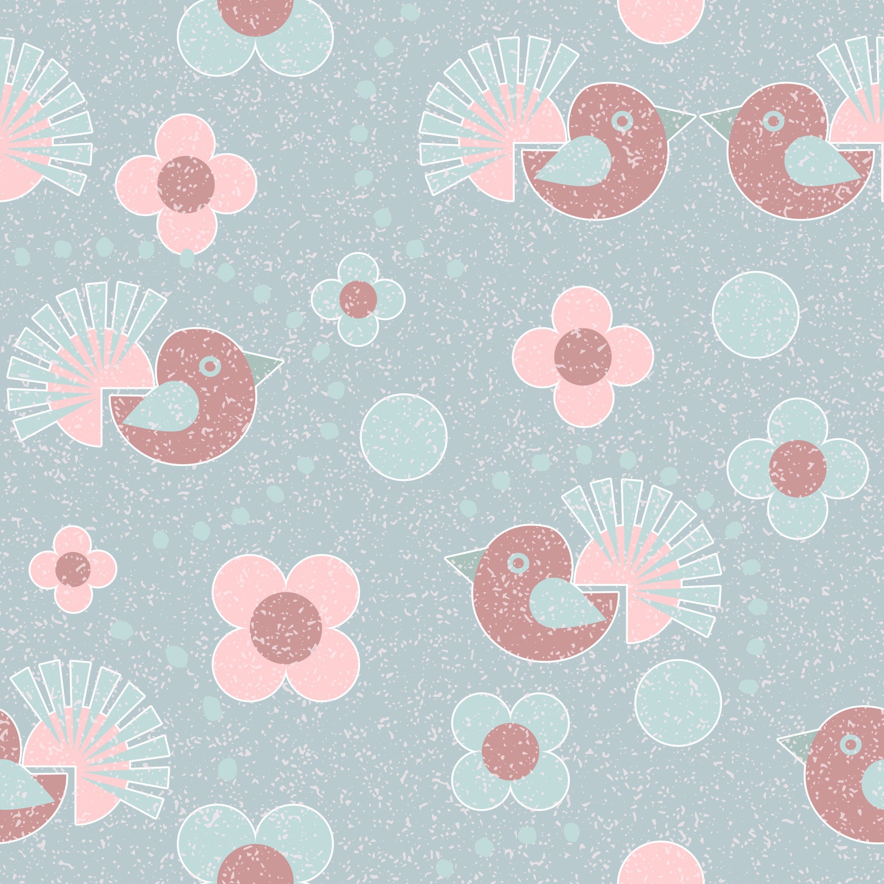 Cheerful bird and flower pattern of the Birdie Blooms: Pastel Pop Wallpaper.
