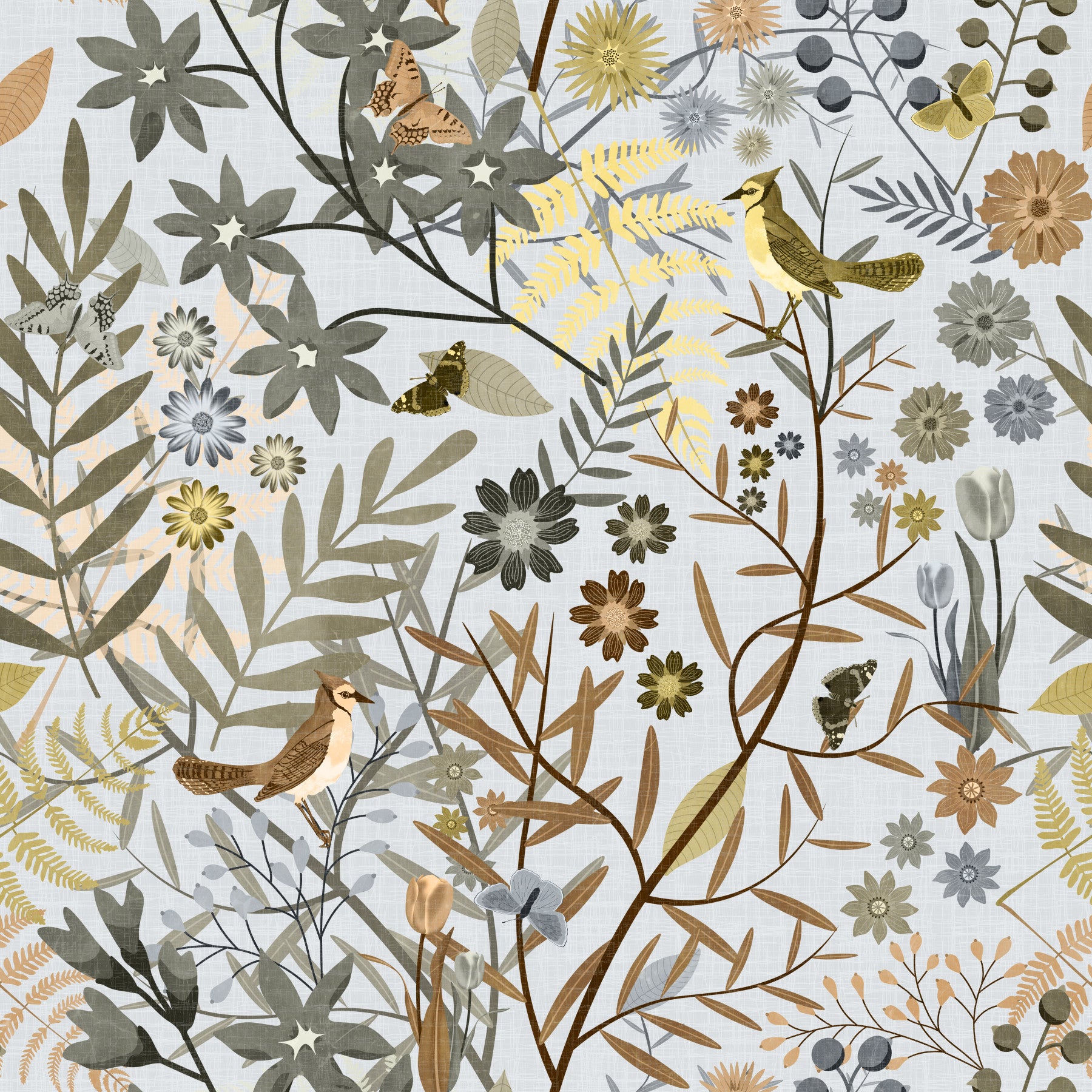 Birds Garden Golden Gray Wallpaper showcases a delicate garden scene with hand-painted birds, butterflies, and a variety of flowers and leaves in muted gold, gray, and earthy tones. This mural wallpaper adds a serene, natural charm to your walls, perfect wallpaper for walls in living rooms, bedrooms, or cozy reading nooks. The intricate details and soft color palette blend beautifully with rustic, vintage, or botanical-inspired interiors. Crafted from durable, easy-to-install materials, this wall mural retains its warm colors and fine detailing over time. Ideal for creating a peaceful, nature-inspired sanctuary.