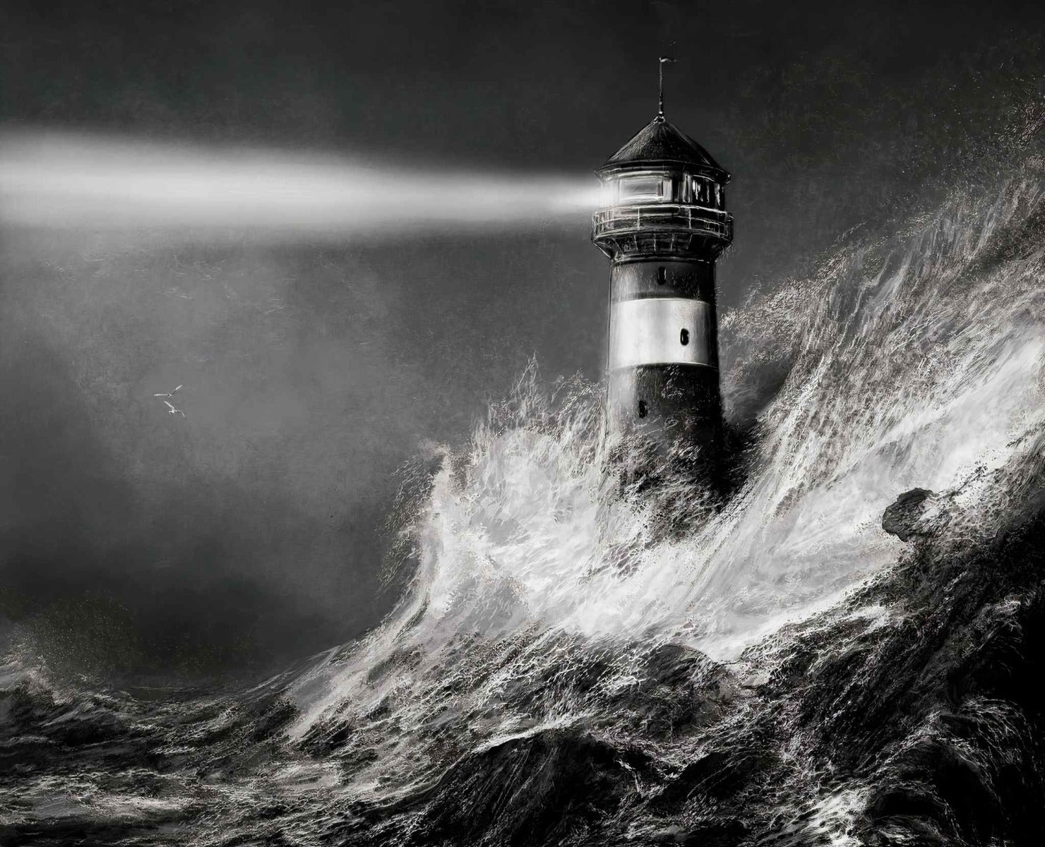 Monochrome Lighthouse in a sea of fierce waters Wallpaper - Giffywalls