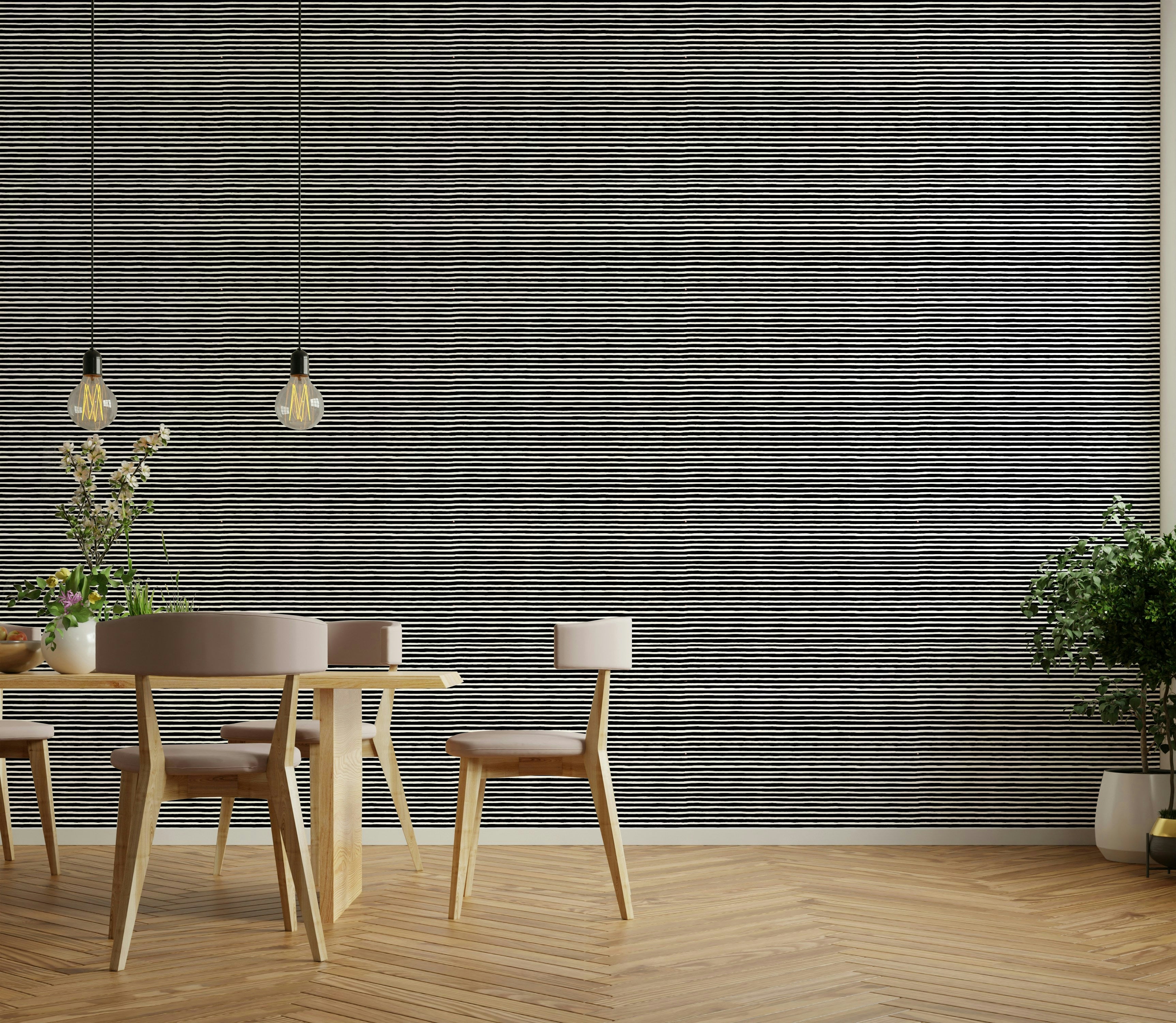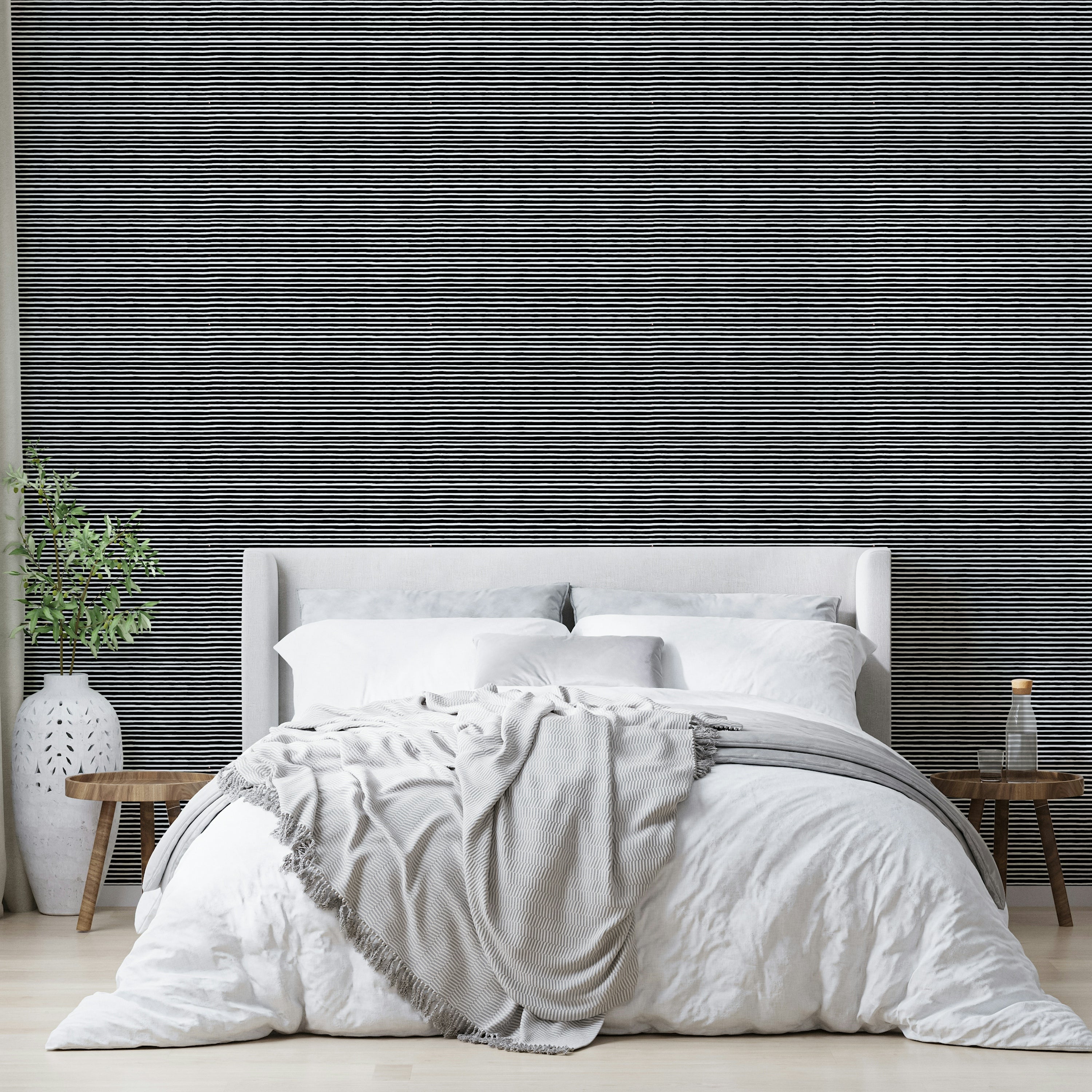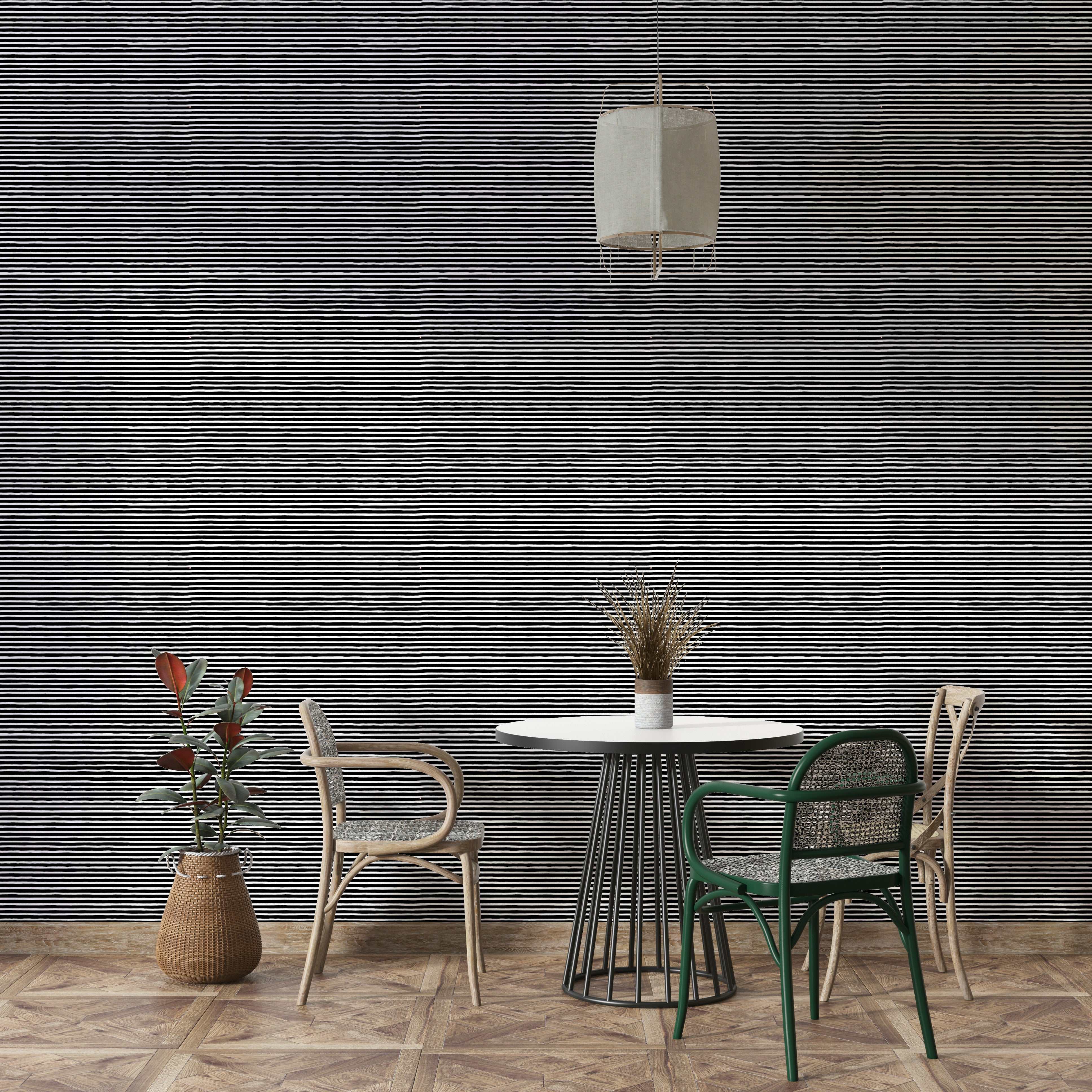 This striking wallpaper features a bold and modern design of hand-painted black stripes against a crisp white background. The slightly irregular, textured lines create a dynamic visual rhythm, adding a touch of handcrafted artistry to the minimalist aesthetic. The stark contrast between black and white delivers a powerful graphic impact, perfect for adding a sleek and edgy feel to any digital device. This clean, contemporary pattern is versatile enough to complement a range of styles, from minimalist to industrial, providing a visually arresting and sophisticated backdrop.