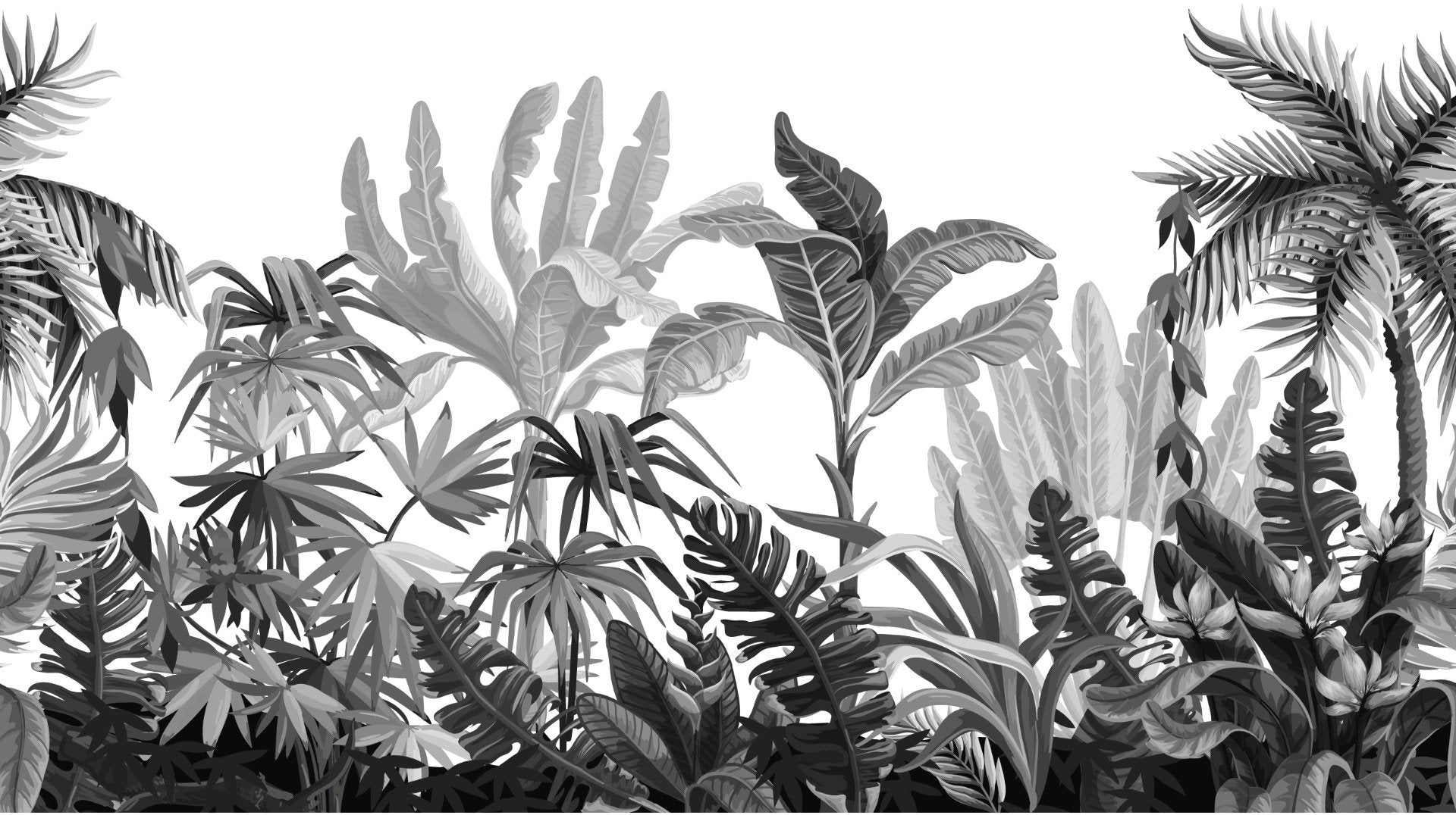 Black & White Tropical Banana Leaves Wallpaper Mural - Giffywalls