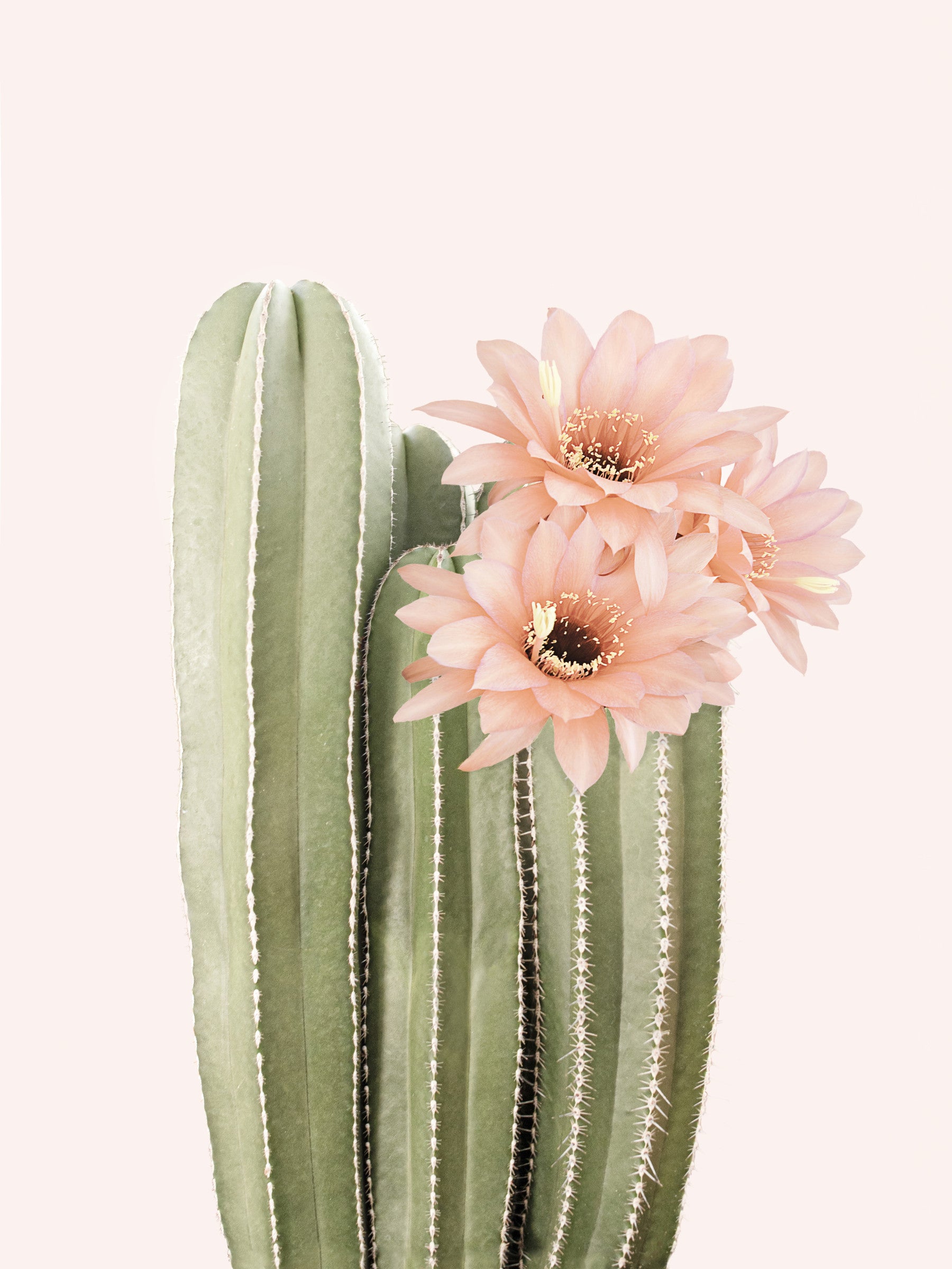 This botanical wallpaper showcases the stunning beauty of a cactus in full bloom. The image is characterized by a striking contrast between the deep green of the cactus and the soft, peach-colored flowers. The meticulous detailing of the cactus's texture and the delicate petals of the flowers creates a visually rich and captivating scene. This wallpaper is perfect for adding a touch of natural elegance to any room, bringing a sense of serenity and sophistication to your home decor. Its rich detail and color palette make it a statement piece for a variety of interior styles.