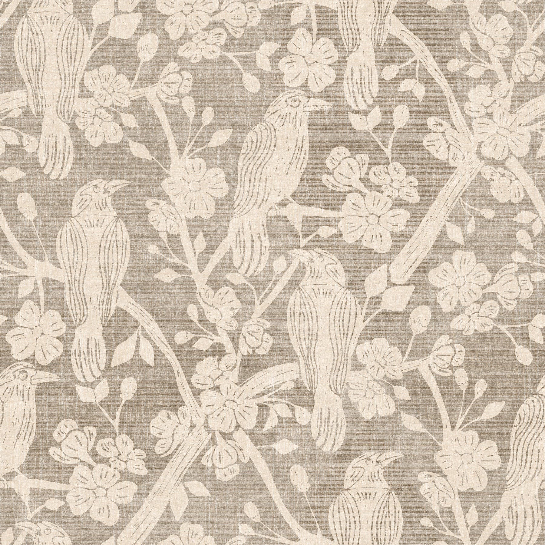 Embrace the serene beauty of nature with Blossom & Crow Beige & Ivory a wallpaper that captures the delicate dance between blossoming flora and the watchful presence of crows. Set against a subtle backdrop of warm beige, ivory blossoms create a gentle, inviting atmosphere, while stylized crows add a touch of intriguing contrast. The artwork evokes a sense of calm and contemplation, ideal for creating a tranquil haven in any room. Its neutral color palette ensures seamless integration into a variety of interior styles, from classic to contemporary. The intricate details of both the birds and blossoms, rendered in a textured, almost linen-like finish, lend an artisanal quality to your walls, infusing your space with understated elegance and a hint of whimsical charm. Bring the poetic grace of the outdoors inside with this timeless design.