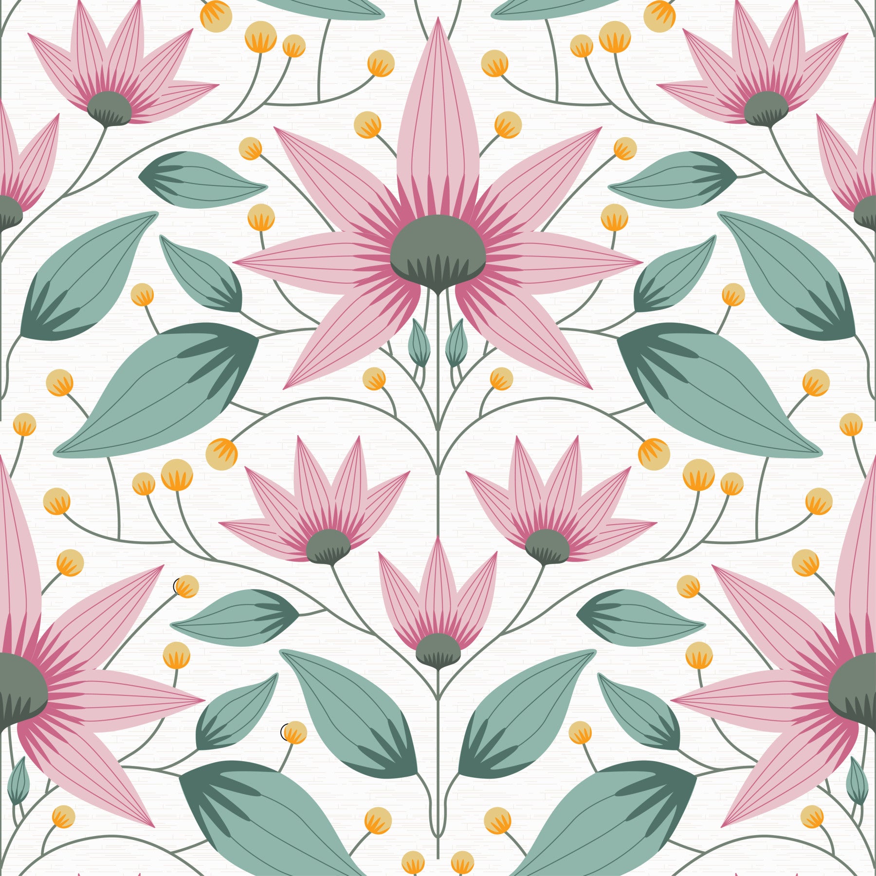 The Blossom Symmetry pink Wallpaper provides a structured botanical aesthetic for various interior spaces. This design features repeating pink floral motifs accented by green leaves and small yellow details on a light, textured background. Its balanced composition works effectively for a feature wall in a living room or as a calming backdrop in a bedroom. The clean lines and soft colour palette suit contemporary home styling and professional office environments. This wall mural is crafted to offer a cohesive look that complements modern furniture and neutral decor. Homeowners can use this pattern to add a touch of nature-inspired art to dining areas or entryways without overwhelming the existing architecture. The durable material ensures a consistent finish across large surfaces. Integrating the Blossom Symmetry pink Wallpaper into a space creates a sense of visual order and soft brightness through its rhythmic floral arrangement.