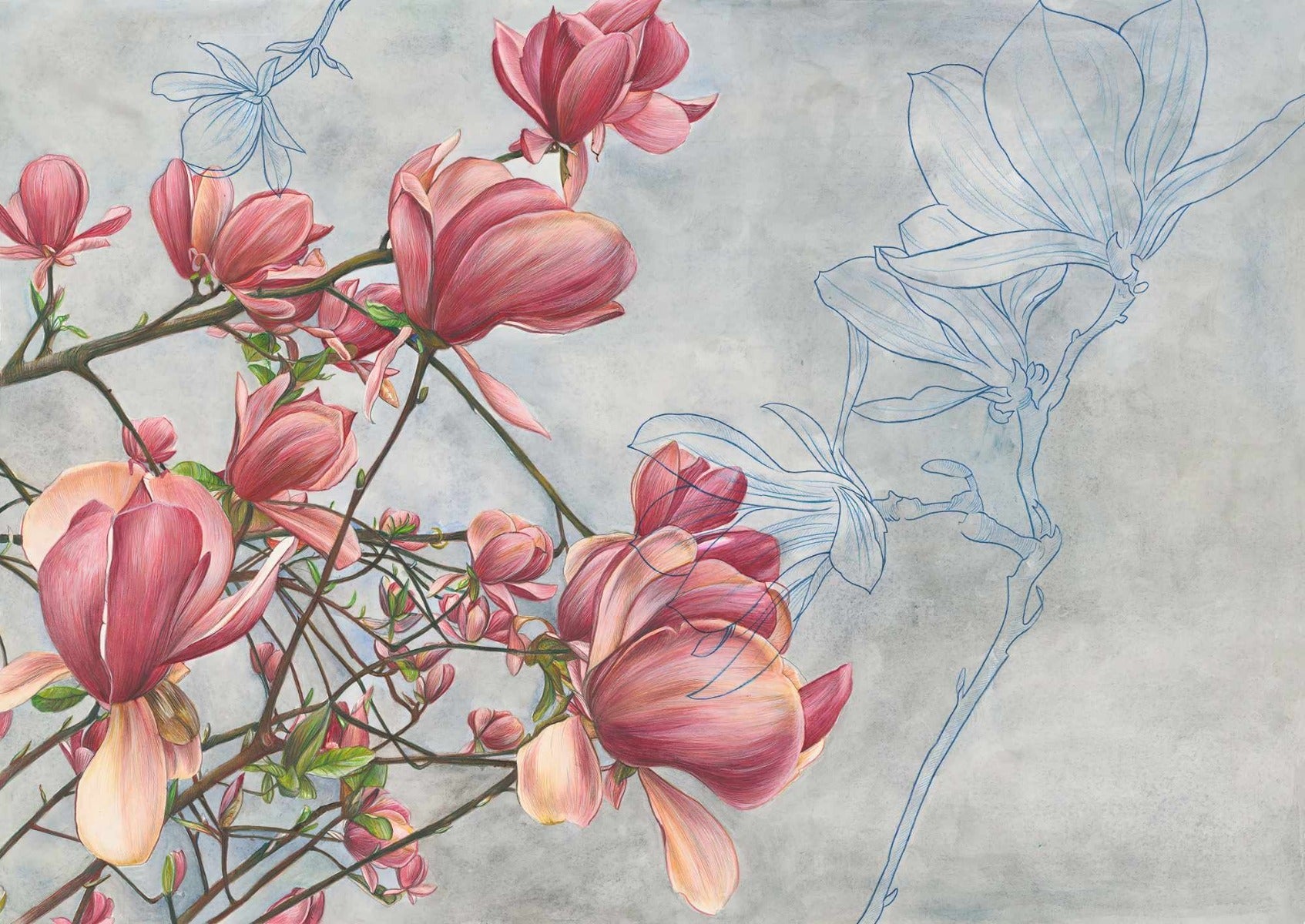 Blossoming magnolia wallpaper perfect for modern wall decor.
