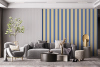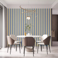 Indulge in the sweet simplicity of "Candy Stripes." This charming design features bold, vertical stripes in a playful cornflower blue and a creamy vanilla, reminiscent of a classic candy shop treat. Delicate pinstripes in a honeyed gold outline the main stripes, adding a touch of refined detail and depth. The overall effect is a delightful blend of nostalgia and modern design. Ideal for creating a lighthearted and cheerful atmosphere, "Candy Stripes" is perfect for nurseries, kitchens, or any space where you want to add a dash of whimsical elegance. Transform your walls into a sweet escape with this timeless pattern.