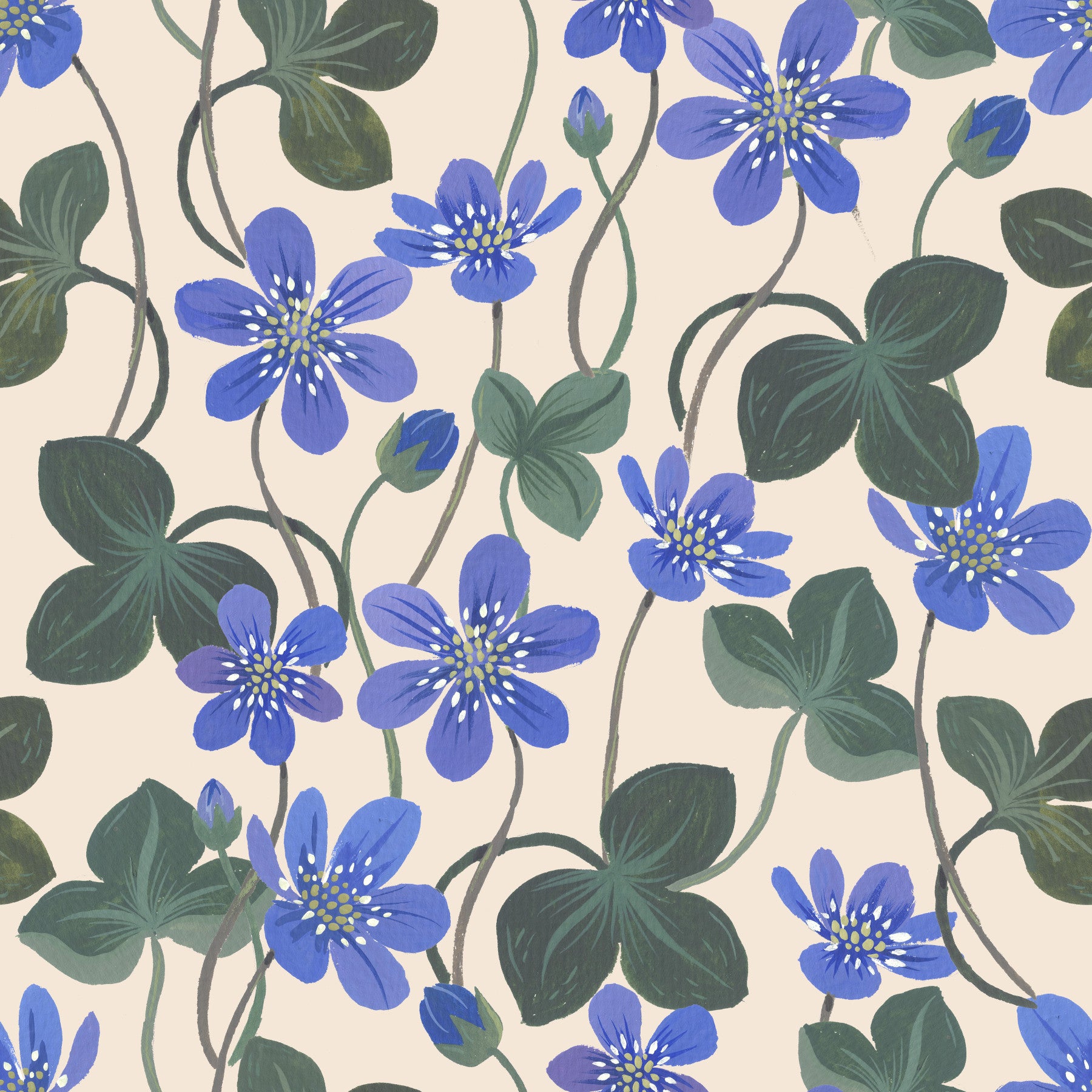 Embrace serenity with "Blue Anemone White," a captivating wallpaper design featuring a delicate array of hand-painted blue anemones. These vibrant blossoms, rendered in exquisite detail against a soft, off-white background, create a calming and elegant atmosphere. The intricate detailing of the flowers, complemented by the muted green foliage, evokes a sense of tranquil beauty. This wallpaper is perfect for adding a touch of nature-inspired sophistication to any space, fostering a peaceful and harmonious environment. The repeating pattern ensures seamless elegance, making it ideal for both large and small areas.