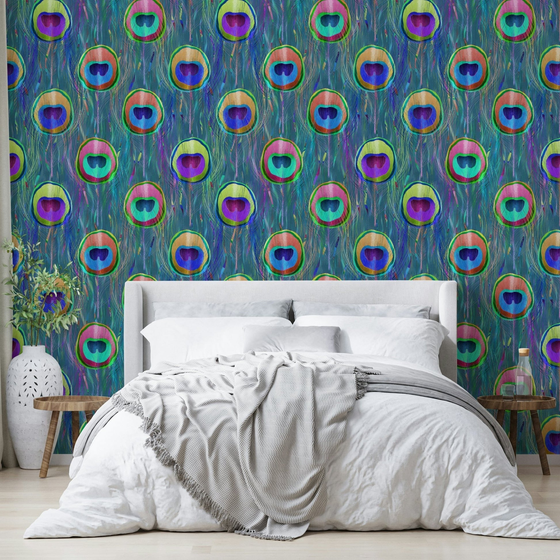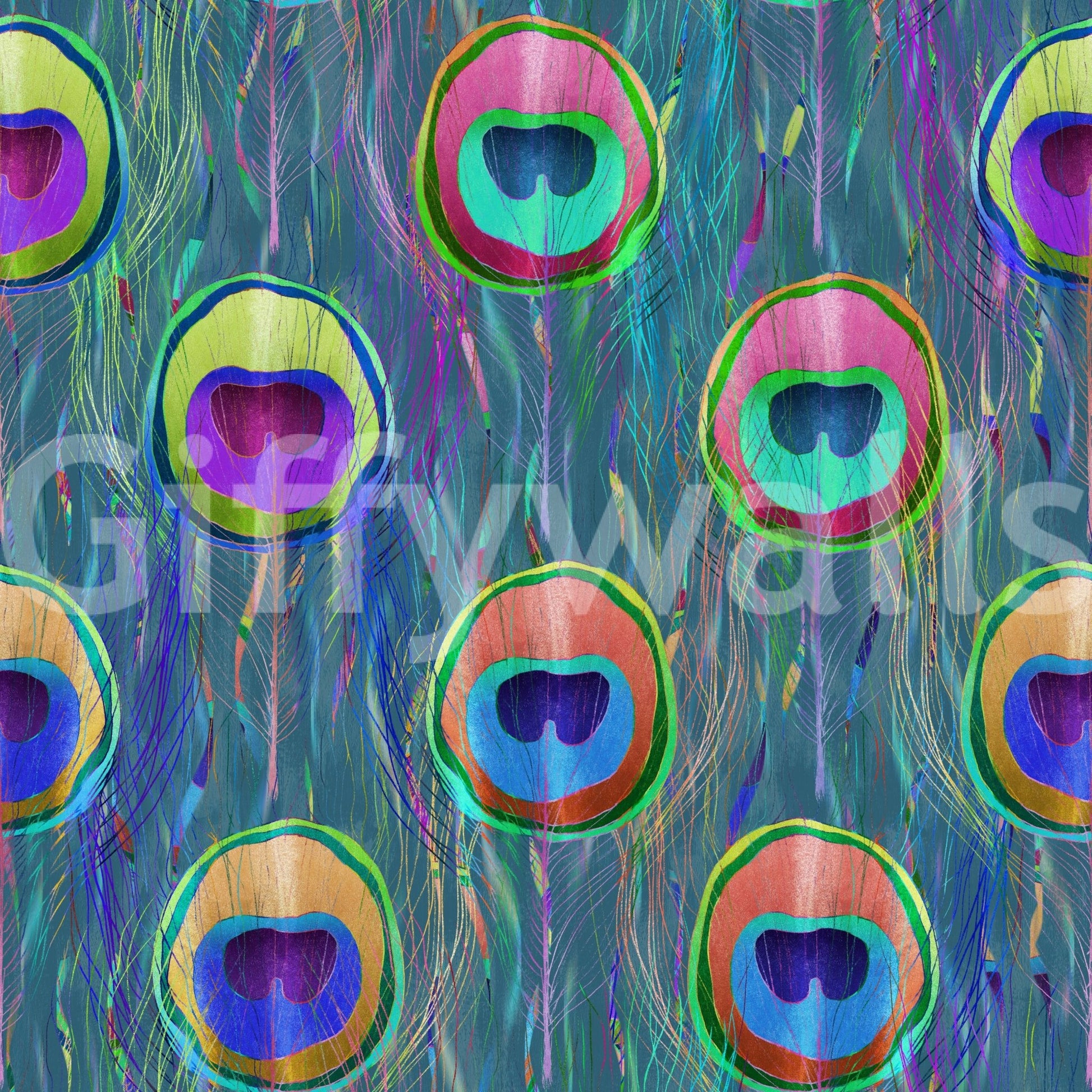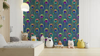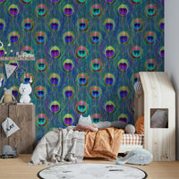 Blue Bohemian Peacock Feathers Wallpaper⁠