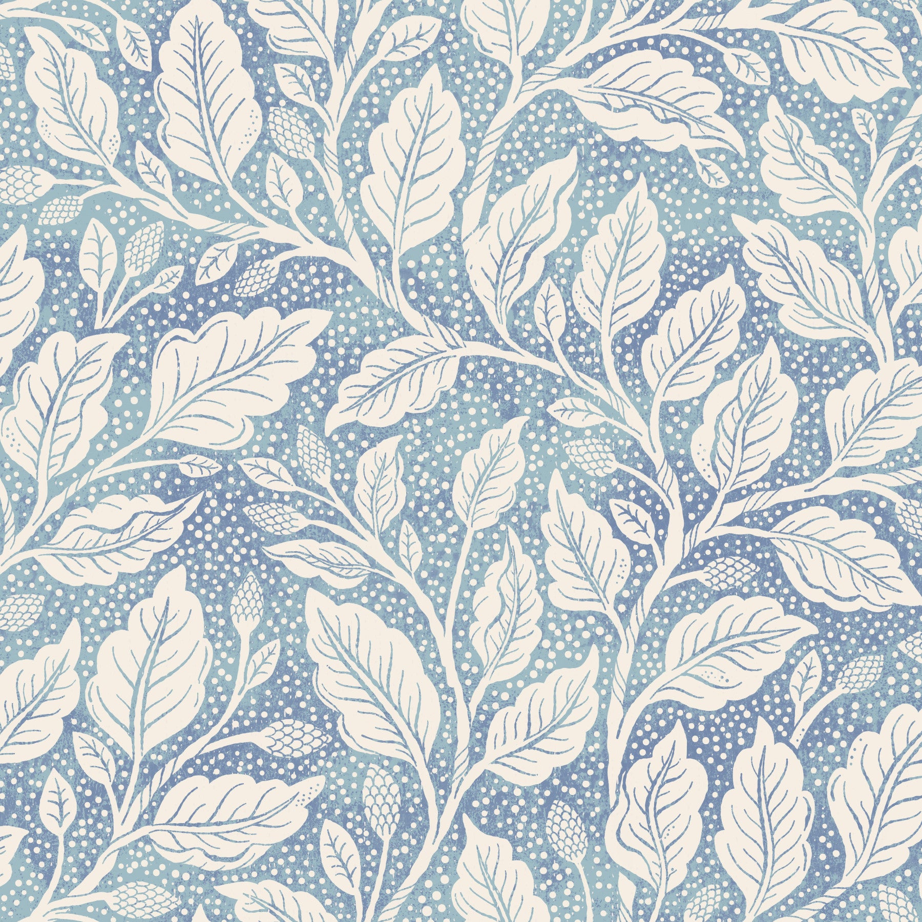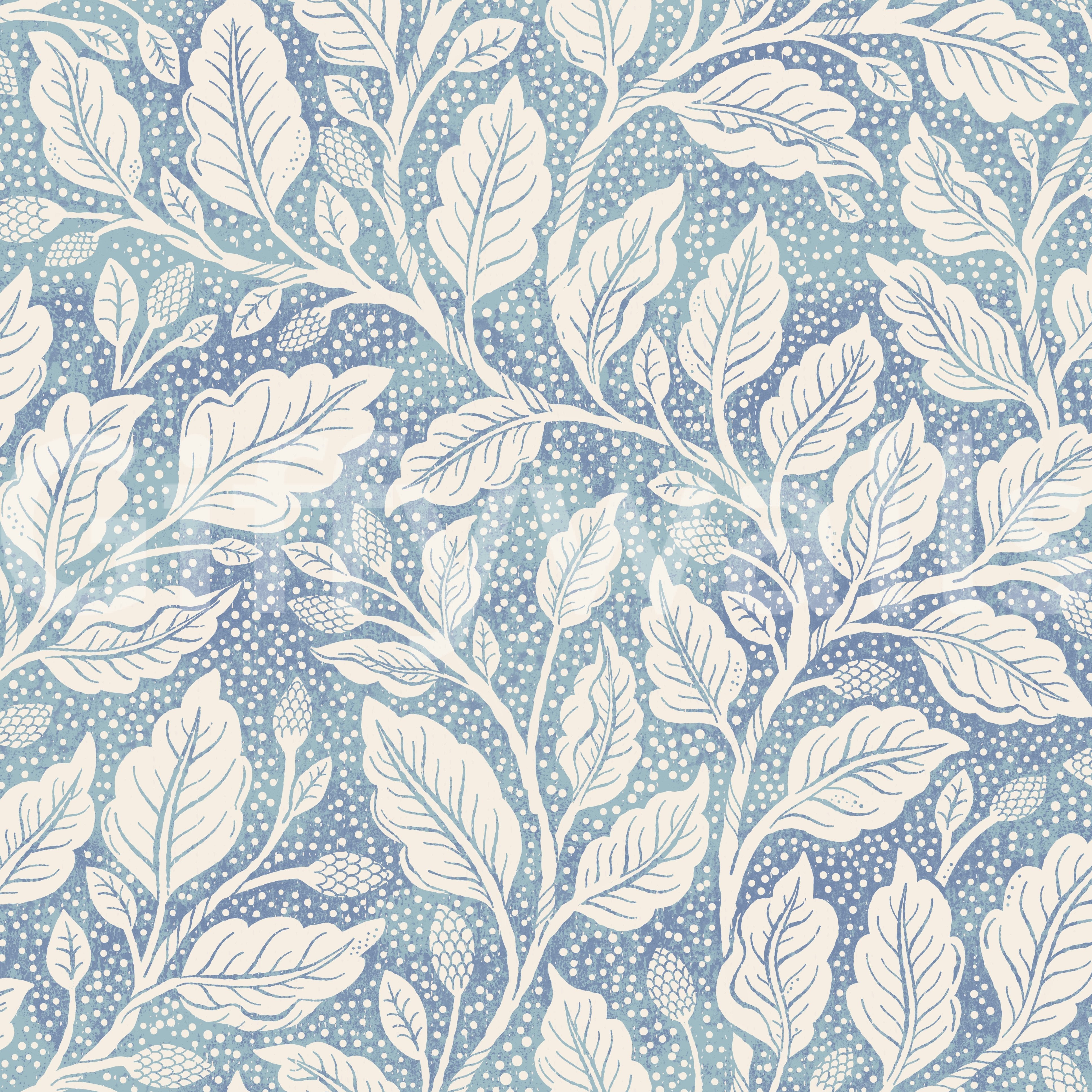 Embrace the serene beauty of 'Blue Budding Branches,' a digital wallpaper featuring a captivating pattern of stylized leaves and budding branches. Delicate off-white foliage elegantly intertwines against a calming, textured blue backdrop speckled with tiny white dots. The design evokes a sense of peaceful growth and springtime renewal, perfect for adding a touch of understated elegance to any digital device. The subtle color palette and intricate details create a calming and sophisticated atmosphere, making it an ideal choice for those seeking a tranquil and visually appealing background.