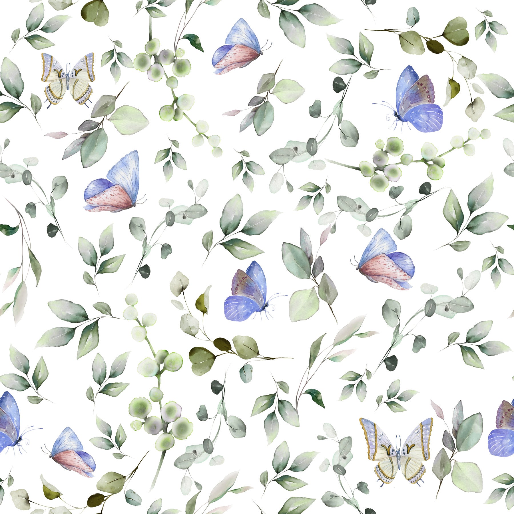 Transform your space with this elegant butterfly and leaf pattern by Uta Naumann. Delicate watercolor artistry showcases soft hues of green and blue, bringing a serene, garden-inspired ambiance to any room. Ideal for bedrooms, nurseries, or living areas, this wallpaper for walls creates a calming yet sophisticated atmosphere. The intricate design works well as a feature wall or to envelop an entire room in subtle beauty. Its gentle colors and flowing lines enhance natural light and complement a variety of interior styles from modern to traditional. Elevate your home décor with this charming design that exudes a sense of peace and natural grace.