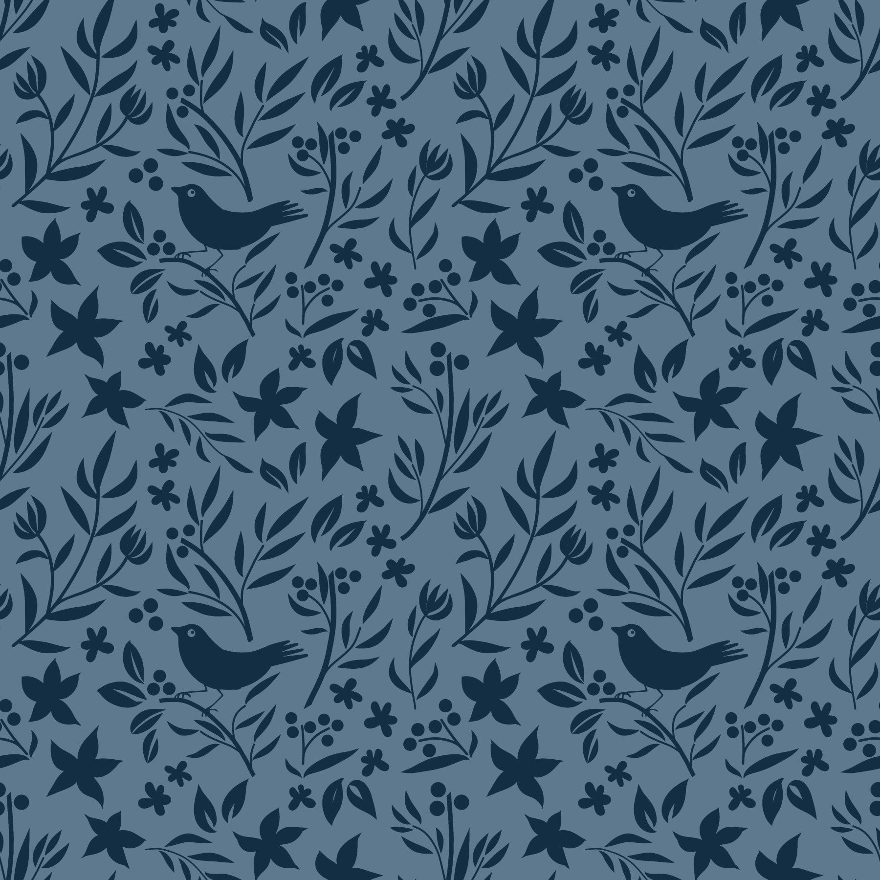 Midnight blue Folk Bird Botanical design, perfect graphic pattern wallpaper.
