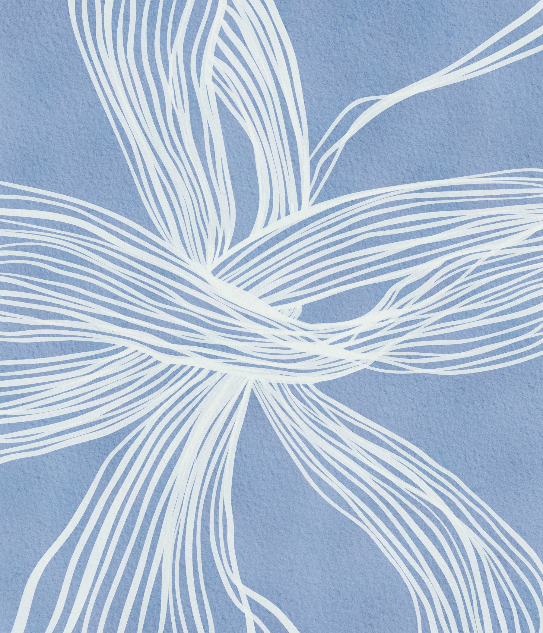 Modern aesthetic wallpaper mural, intersecting white strands, serene blue background.