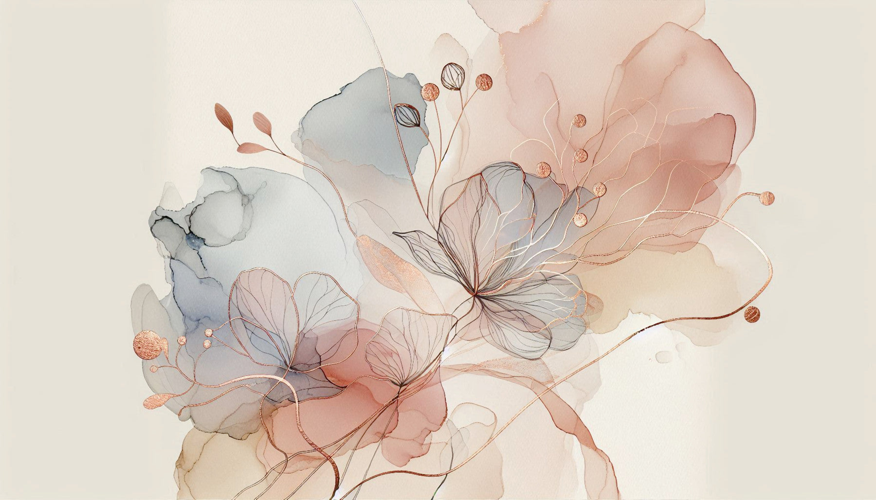 This abstract floral wallpaper features a captivating blend of soft blush pinks, muted greys, and elegant rose gold accents. Delicate line art floral motifs intertwine with flowing alcohol ink washes, creating a serene and sophisticated atmosphere. The subtle color palette and ethereal design make it a perfect choice for bedrooms, living rooms, or any space needing a touch of calming elegance. The interplay of delicate lines and fluid forms creates a mesmerizing effect, inviting the eye to wander and appreciate the artistic beauty. This wallpaper seamlessly blends modern minimalist design with a touch of romanticism, making it an ideal addition to a variety of interior styles.