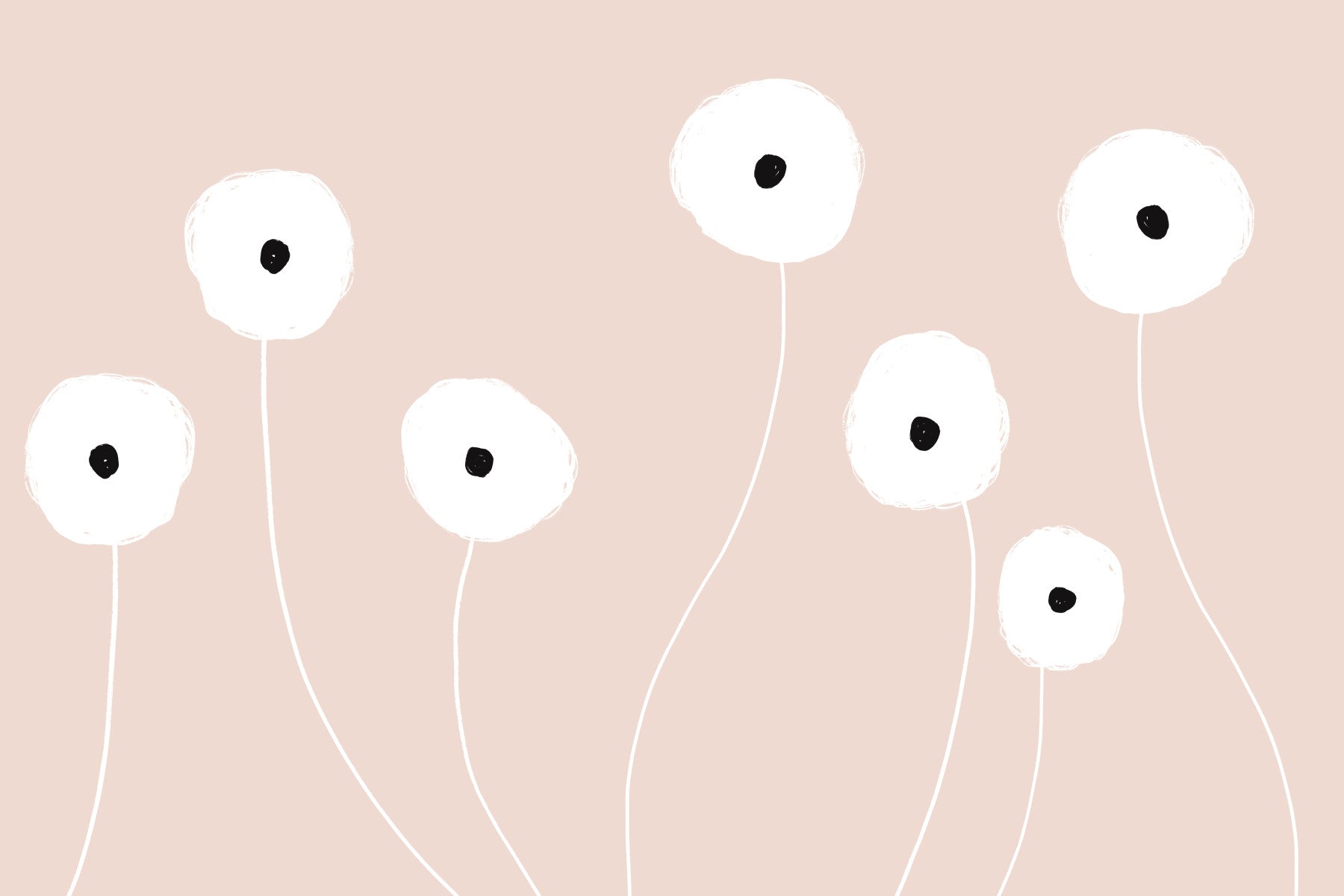 Elevate your interior with this charming floral design. Featuring delicate white blossoms with bold black centers on a gentle blush background, this is understated style at its finest. Ideal for a bedroom, nursery, or even a quiet office, it adds a subtle touch of nature indoors. The clean lines and soft colors of this wallpaper for walls enhance natural light. Let this design work effortlessly with modern, minimalist, or classic decor styles.