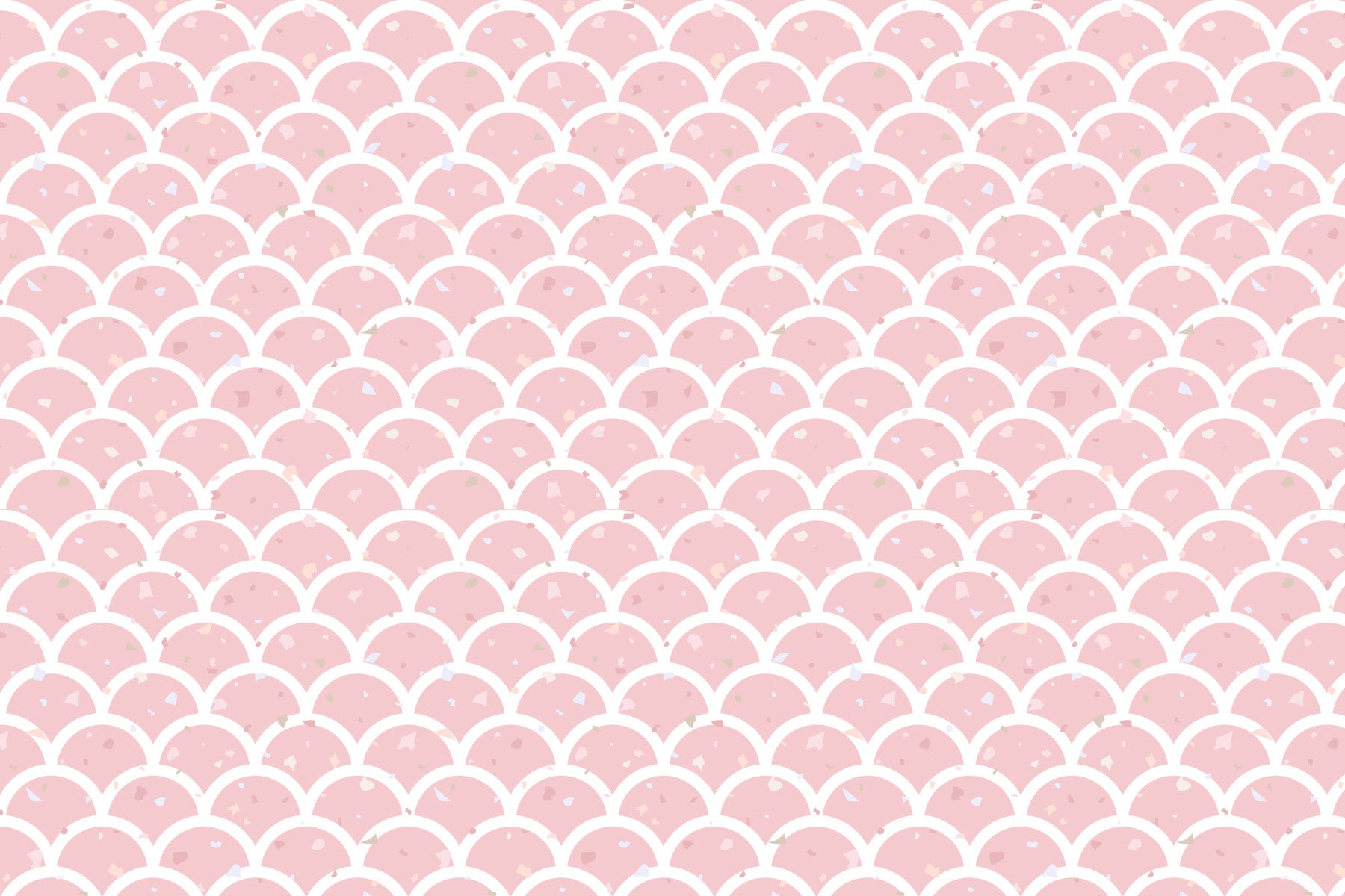 Invite a subtle elegance into your space with this blush pink wallpaper for walls. The pattern presents a soft terrazzo effect within an arrangement of scales, offering a refined yet playful charm. The white accents between scales add a light, airy feel. This design enhances bedrooms, bathrooms, and nurseries. It offers a gentle backdrop that complements furniture and decor, while making a space feel more open and inviting.