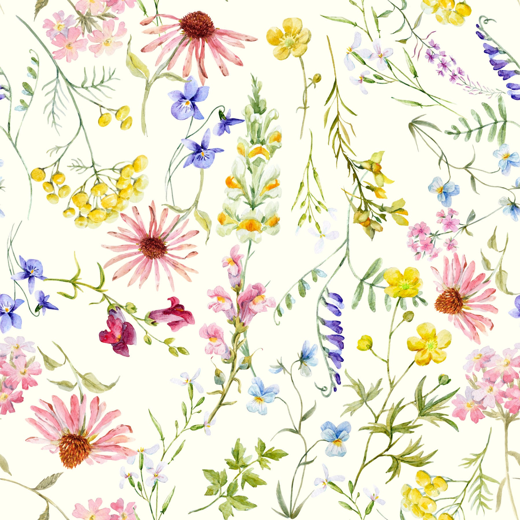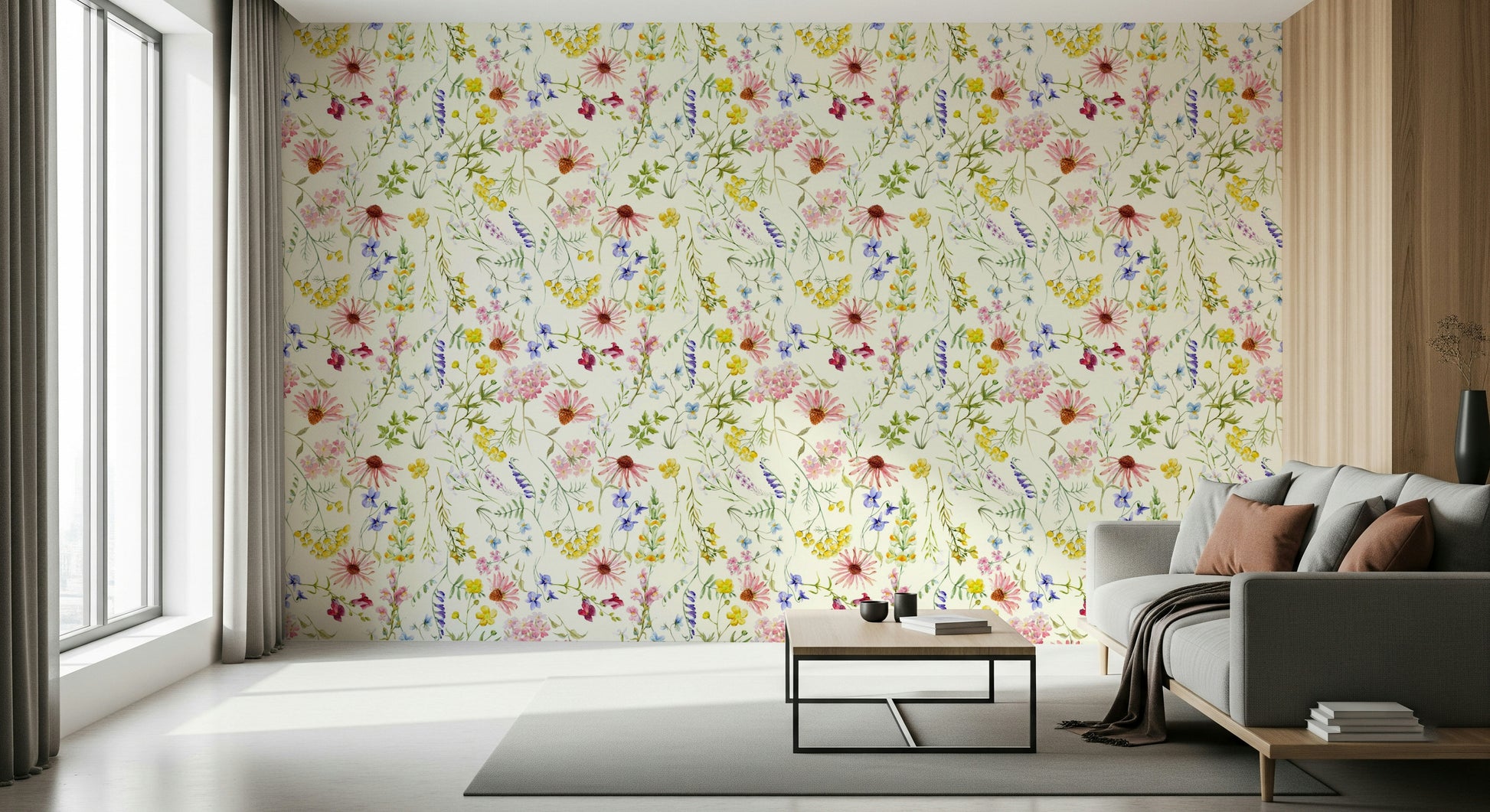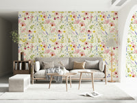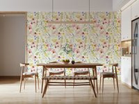 Transform your home with this delicate wildflower wallpaper for walls. Featuring a watercolor design, this floral pattern adds a touch of countryside charm to any space. The soft color palette, including pinks, yellows, and blues, complements various interior styles. Decorate your living room or bedroom with this enchanting print, which brings the beauty of nature indoors. This wallpaper works wonders in hallways, creating an inviting and refreshing ambiance. The seamless repeat pattern ensures a cohesive and stylish look, enhancing the overall aesthetic of your home.