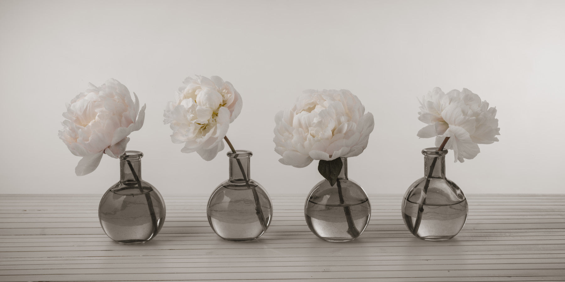 The Blushing Peonies Wall Mural gives your home a touch of modern, quiet beauty. This mural wallpaper shows a simple arrangement of four delicate peonies in glass vases. The soft, blushing colors of the flowers and the clean, minimalist style create a feeling of peace and sophistication. It's an easy way to give your space a fresh, elegant look that is both simple and artistic. This high-quality wallpaper for walls is ideal for a bedroom, bathroom, or living area.