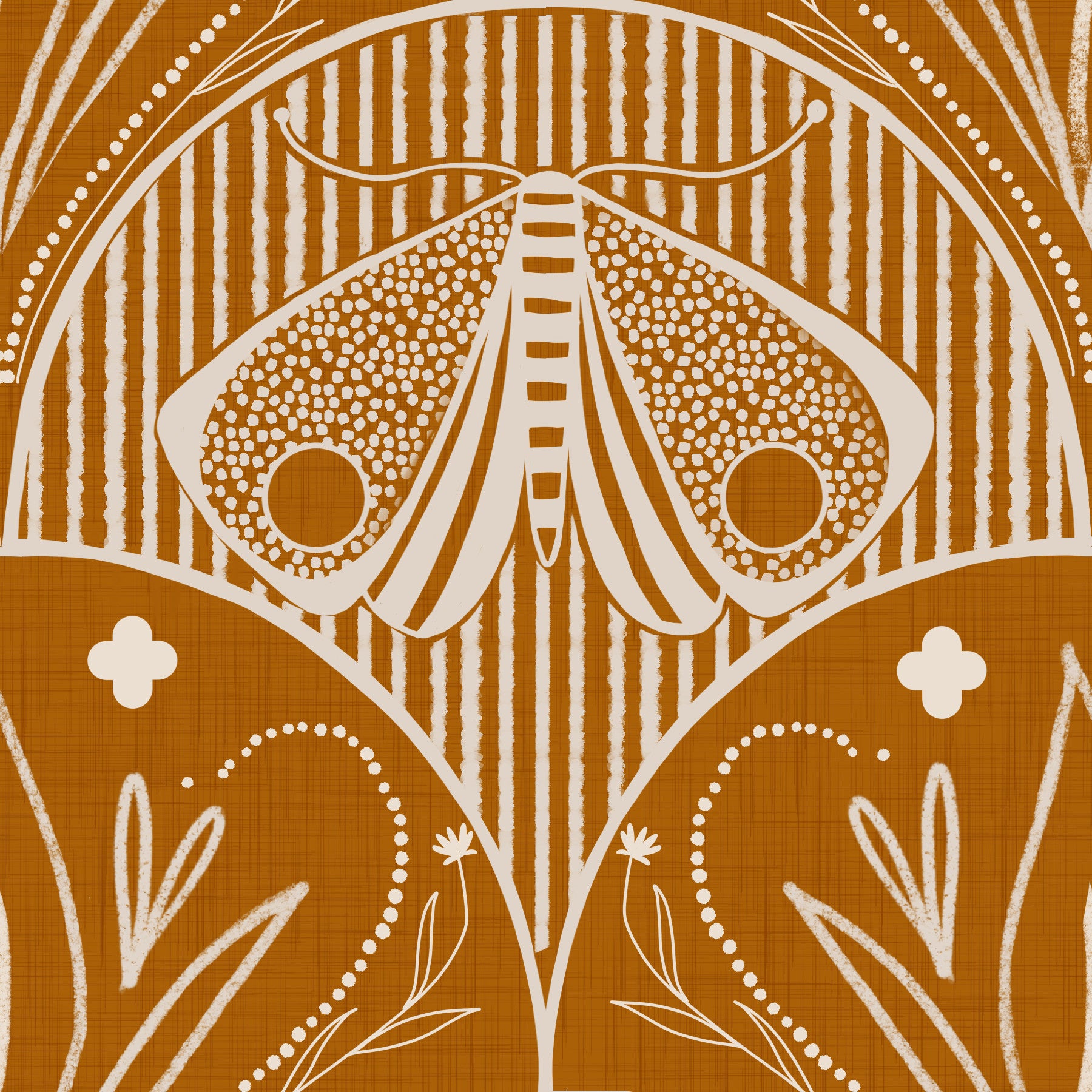 Decorative cream moth illustration Boho Art Nouveau Scallop Butterfly Floral in Burnt Orange.