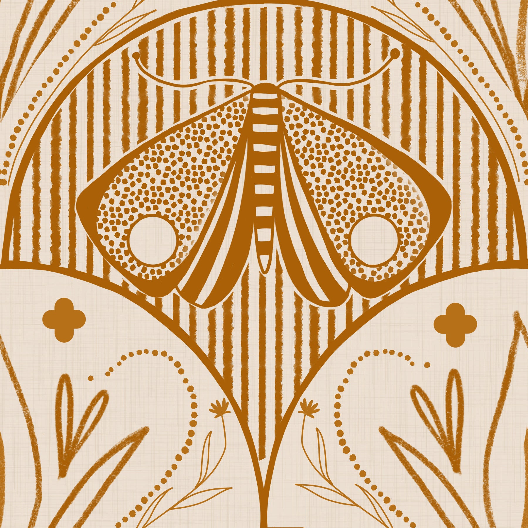 Cream Burnt Orange Butterfly Art Nouveau pattern.