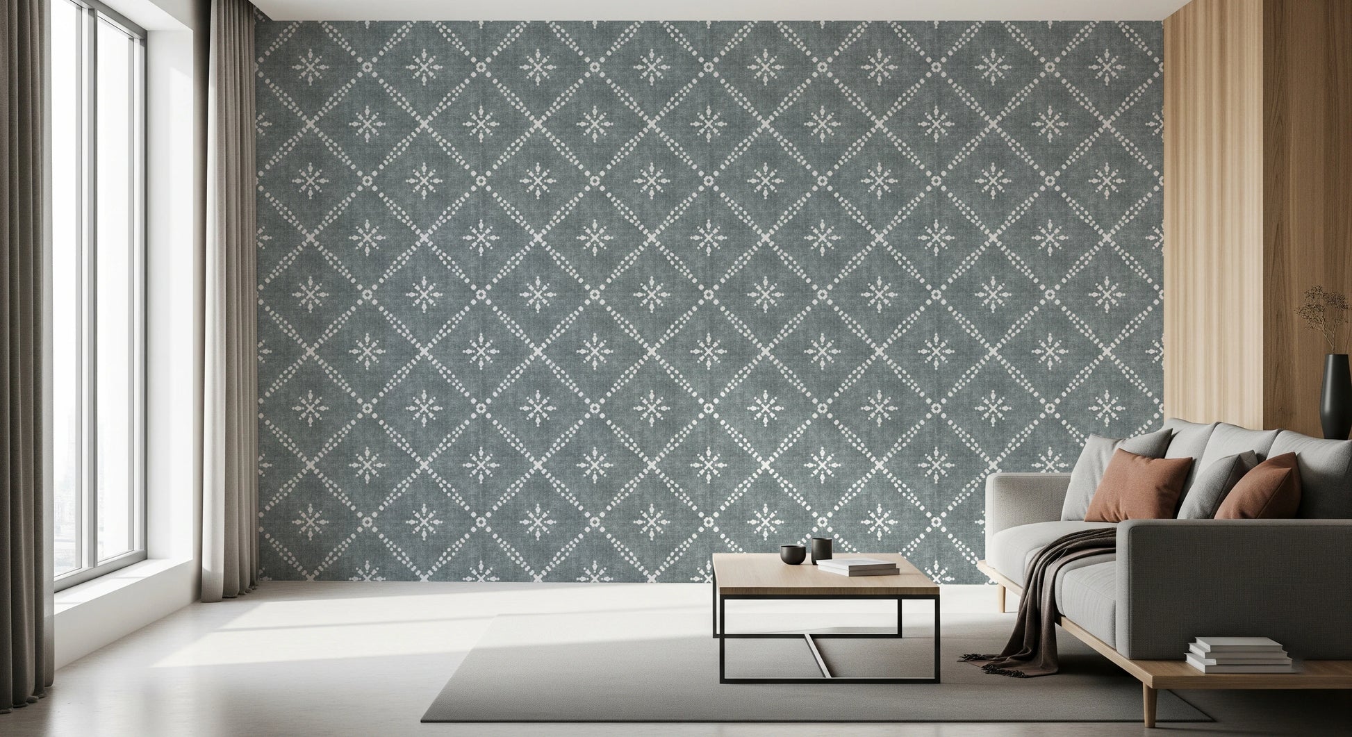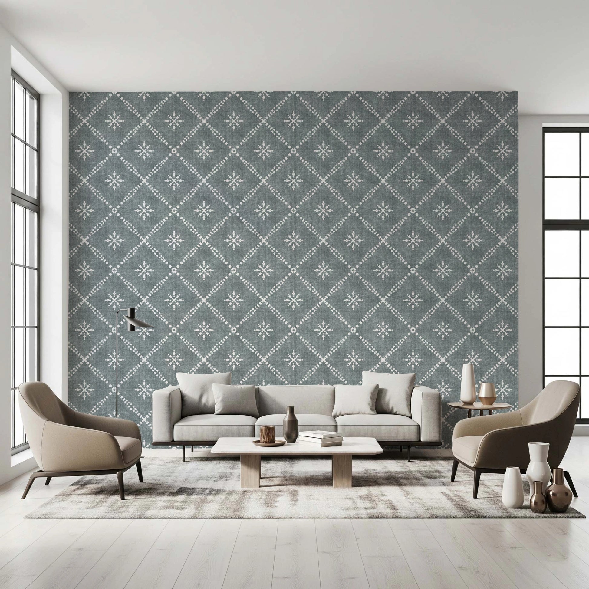 Boho Dotted Lattice Grunge Calming Blue Wallpaper⁠