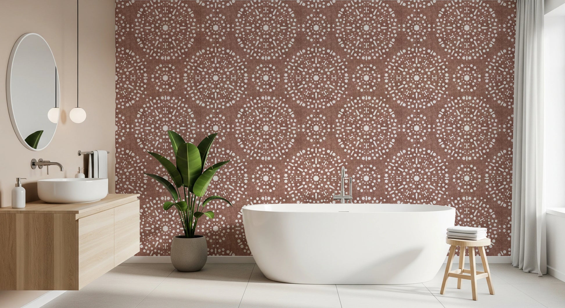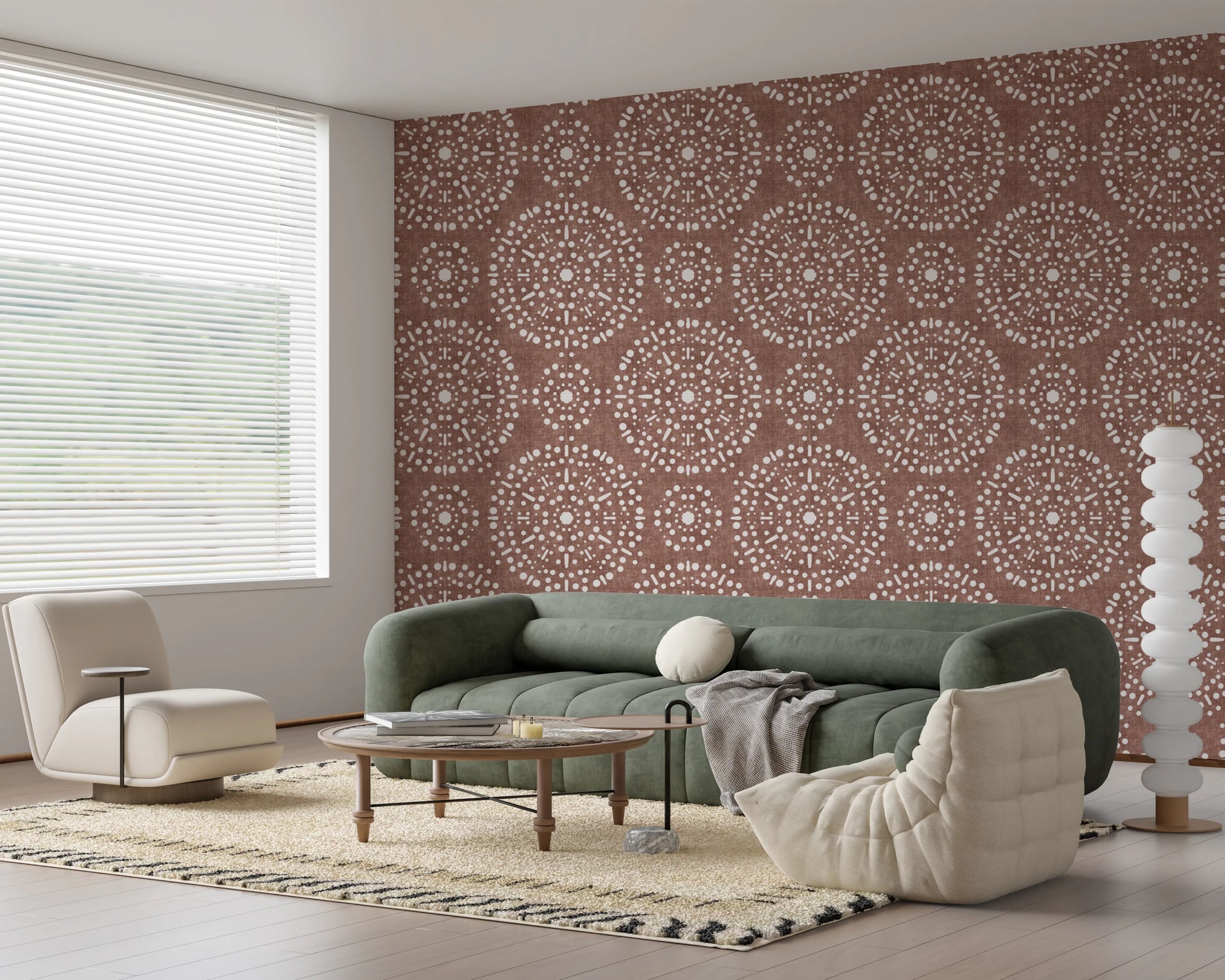 Embrace the warmth of "Boho Fireworks Grunge Terracotta Red" and infuse your space with rustic charm and an unexpected burst of celebratory energy. This wall décor features a captivating interplay of circular motifs and linear accents reminiscent of fireworks frozen in time. Against a distressed terracotta backdrop, the off-white pattern brings a sense of bohemian artistry. This design marries free-spirited style with a touch of urban edge. Perfect for creating a cozy, inviting atmosphere with a hint of playful rebellion, it is ideal for those seeking a distinctive and visually intriguing wall treatment.