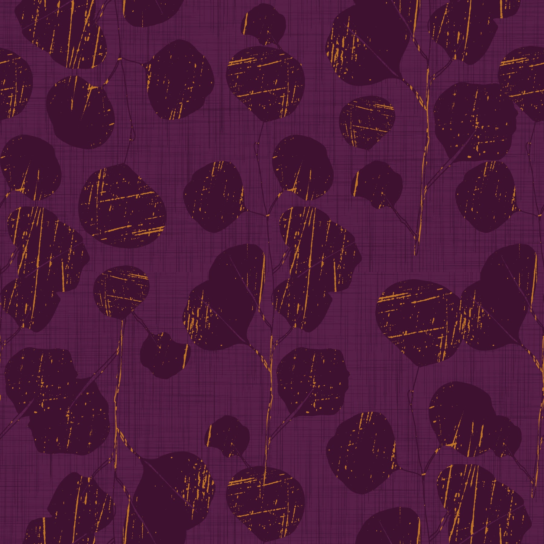 Immerse yourself in the luxurious depths of 'Boho Jewel Tone Botanical Plum Leave Purple'. This wallpaper exudes a sophisticated bohemian vibe, blending rich plum hues with an artistic botanical motif. Dark purple leaves, rendered in bold silhouette, create a captivating dance across the surface, while subtle golden accents add a touch of understated glamour. The textured background evokes the feeling of natural fibers, grounding the design with an earthy elegance. This wallpaper is perfect for adding a statement wall to a bedroom or living room, infusing your space with a sense of warmth, depth, and creative flair. Bring a touch of jewel-toned botanical beauty into your home, and let this striking design transport you to a world of sophisticated serenity.