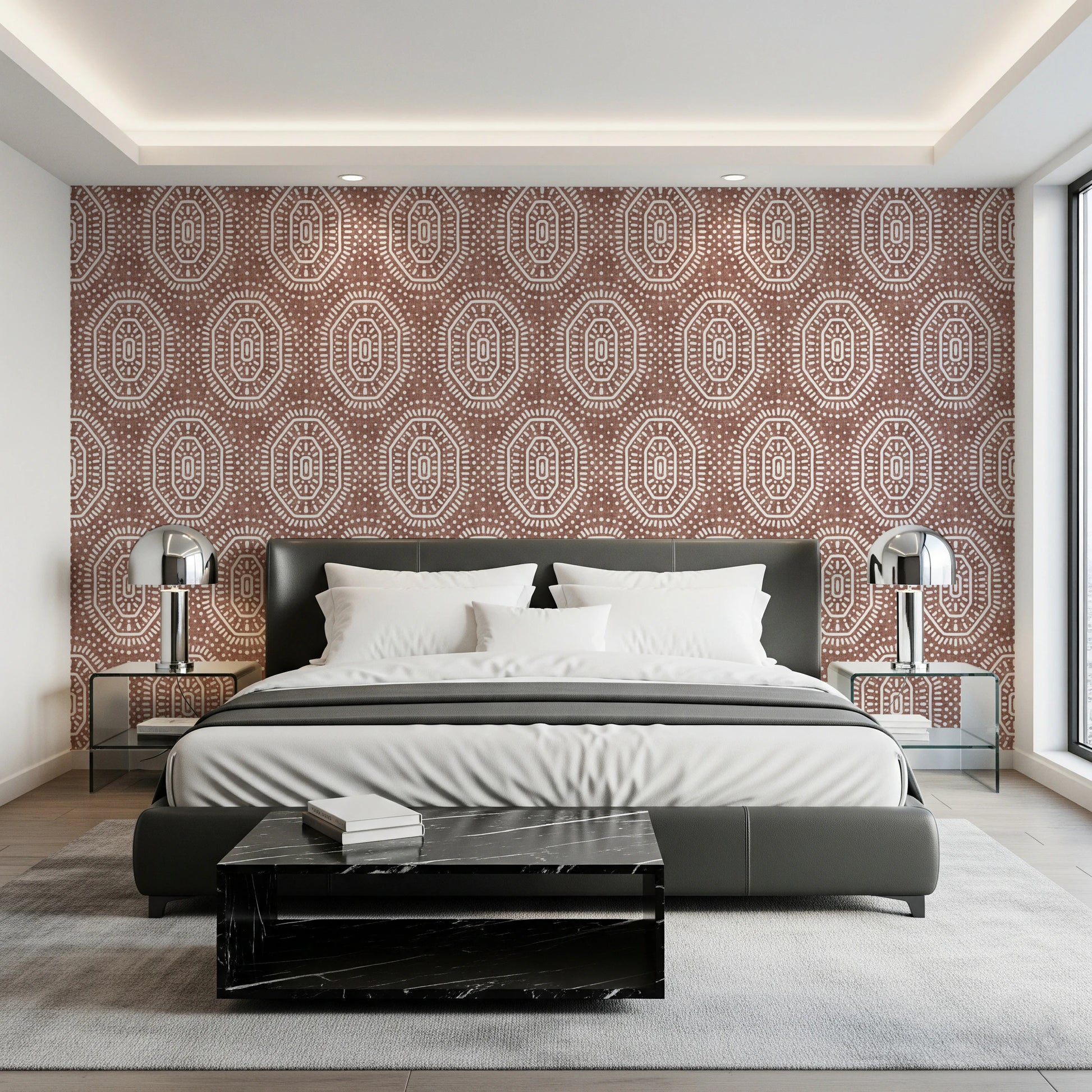 Boho Octagons Crochet Grunge Terracotta Red Wallpaper⁠