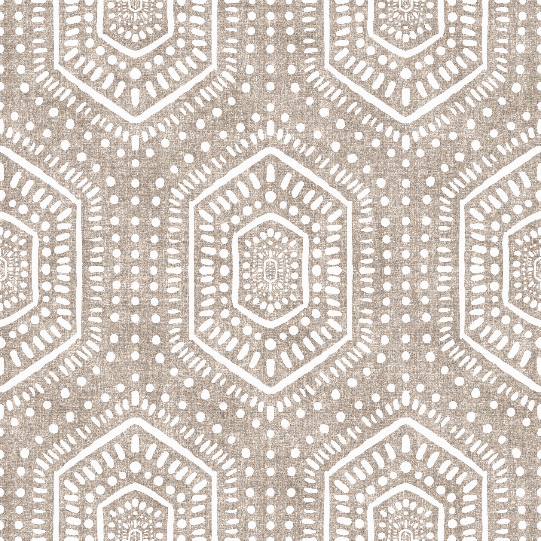 Embrace the effortlessly chic vibe of our 'Boho Painted Grunge Earthy Beige' wall covering. This design features a captivating geometric pattern reminiscent of hand-painted artistry, imbued with a touch of bohemian spirit. The earthy beige backdrop creates a warm and inviting ambiance, while the distressed effect adds a layer of depth and character, reflecting a sense of lived-in comfort. Repeating stylized shapes, outlined in crisp white, dance across the surface, offering a visually stimulating yet calming aesthetic. Introduce a touch of global inspiration to your interior spaces with this unique and versatile design. Perfect for creating a statement wall or adding subtle texture to any room.