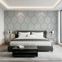 Embrace the tranquil allure of the 'Boho Painted Grunge Grey Clouds,' a wall covering that evokes a sense of calm and artistic freedom. The subtle grey backdrop, reminiscent of a cloudy sky, provides a textured canvas for a free-spirited pattern. Bold, hand-painted geometric shapes, outlined in clean white, create a striking contrast, adding a touch of bohemian charm. The grunge effect lends a lived-in, vintage feel, perfectly capturing a relaxed yet stylish ambiance. Perfect for creating a serene and sophisticated focal point in any room, this design brings a unique blend of rustic texture and modern geometric elegance to your walls. The off-white, hand-drawn pattern is reminiscent of vintage textiles, adding depth and character to your space.