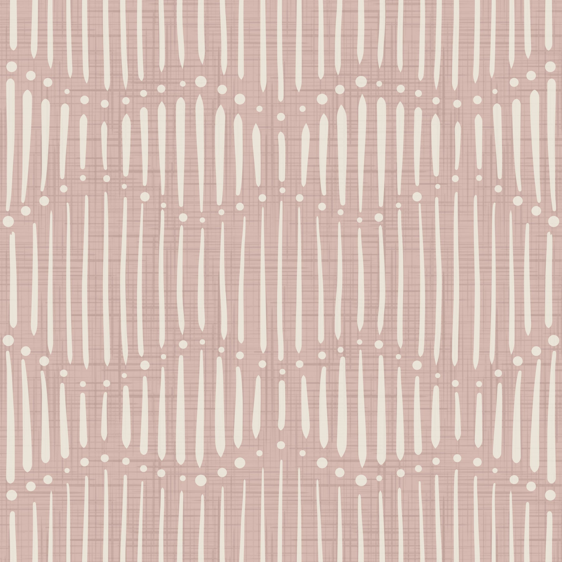 Embrace the free-spirited allure of Boho Waves On Rosy Canvas a wallpaper design that exudes tranquil charm and artistic simplicity. Set against a subtly textured, rosy backdrop reminiscent of aged canvas, this design features elongated, flowing lines in a soft, creamy white. These lines create a wave-like effect, adding a touch of organic movement to your space. Scattered minimalist polka dots complete the boho feeling. Infuse your home with a sense of calm and creativity with this warm, inviting pattern. Ideal for creating a relaxed and inviting atmosphere in bedrooms, living rooms, or study spaces, 'Boho Waves On Rosy Canvas' brings a touch of understated elegance to any interior. Let your walls tell a story of artistic expression and bohemian spirit with this captivating wallpaper.