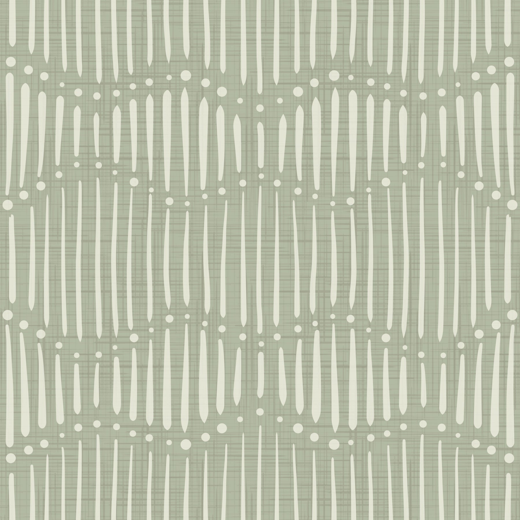 Immerse yourself in the tranquil allure of Boho Waves on Sage Canvas a wallpaper that evokes a sense of serene artistry and relaxed sophistication. The design features rhythmic, wave-like patterns formed by elegant, pale ecru stripes gracefully cascading across a textured sage green canvas. These elongated forms are punctuated by an array of scattered dots, creating an understated yet captivating visual dance. The backdrop subtly mimics a linen weave, lending a tactile, organic feel that enhances the wallpaper's bohemian charm. Perfect for creating a calming and inviting atmosphere, 'Boho Waves on Sage Canvas' adds a touch of effortless style to any space. This wallpaper celebrates the beauty of simplicity, making it an ideal choice for bedrooms, living rooms, or any area where a touch of artistic tranquility is desired. Bring the essence of bohemian chic to your walls with this harmonious blend of pattern and color.