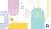 This wallpaper is a vibrant celebration of bold minimalist geometric design. Clean lines and soft pastel hues—lavender, mint green, and sunny yellow—create a visually calming yet striking composition. Curved shapes and concentric circles dance alongside straight lines and simple geometric forms, fostering a sense of balance and modern elegance. The subtle color palette and uncluttered layout make it a perfect choice for those seeking a sophisticated yet playful backdrop for their kids or teens room.